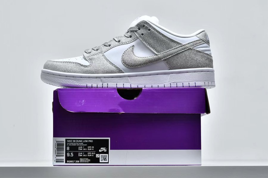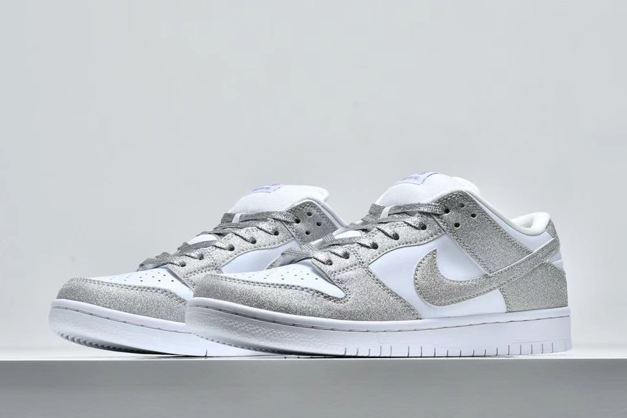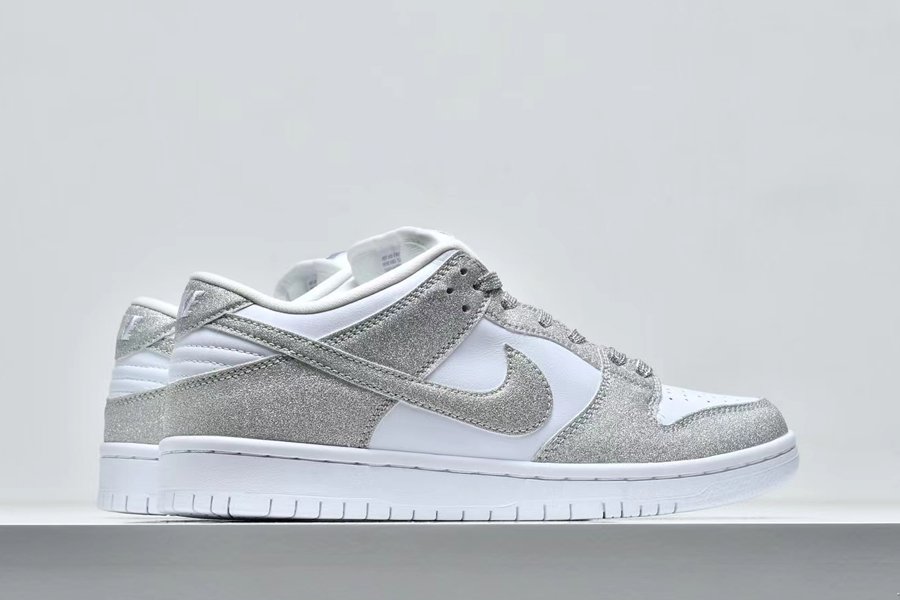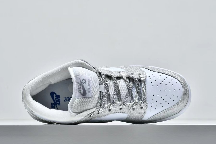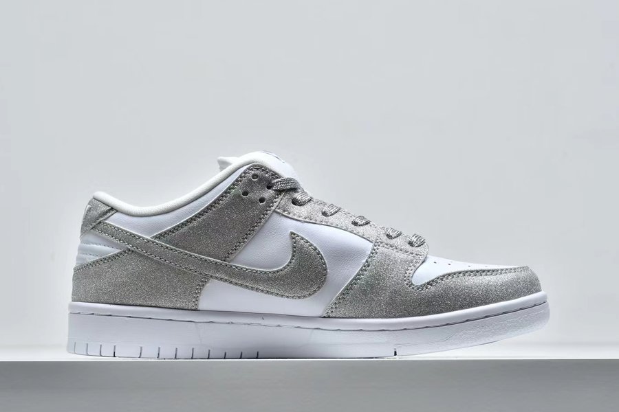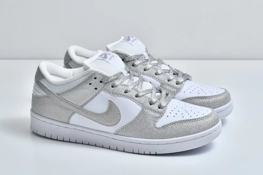 New Nike SB Dunk Low Pro Shiny Silver/White