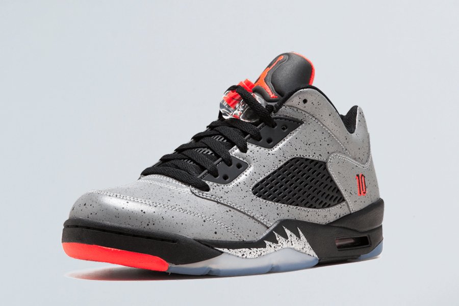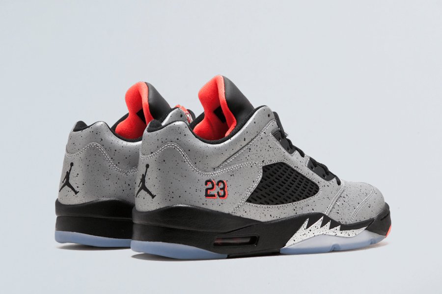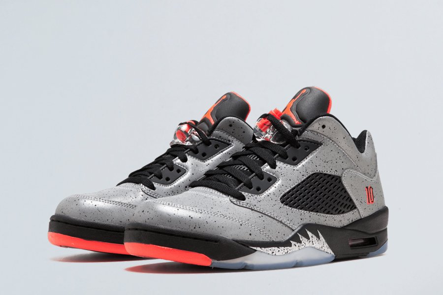 The Neymar x Air Jordan 5 Low features a full 3M reflective Cement Print upper that includes Infrared accents, Black detailing, the number 10 and 23 on the left and right side as a nod to both Neymar’s and Jordan’s numbers, completed with Neymar’s Air Jordan logo on the insole and a translucent outsole.