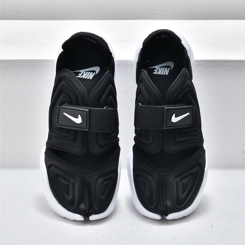 Nike’s Aqua Rift is the union of these two experimentally minded projects. The open, split-toe look of the Air Rift is rendered in the aquatic performance materials of the Aqua Gear range, and augmented with an accentuated midsole, inspired by traditional Japanese geta sandals.