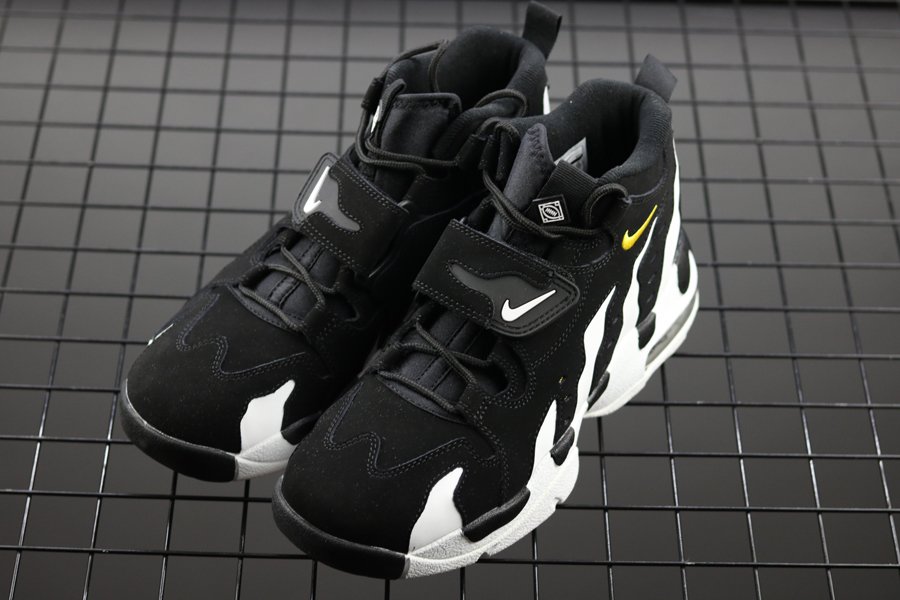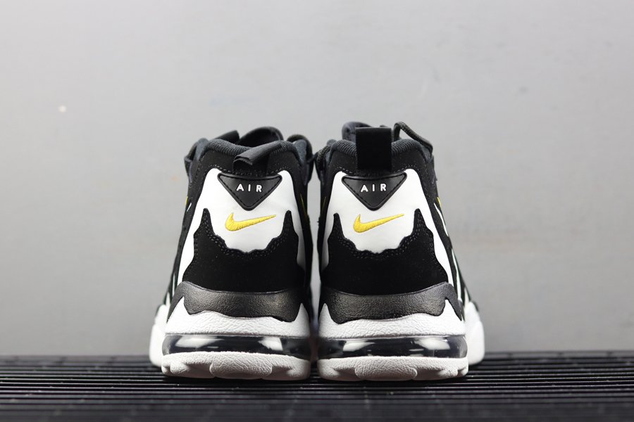 This color combination of Black, Varsity Maize and White is an original seen on the Air DT Max ’96 and last released during 2013. Now for 2018 this retro release features Black nubuck across the overlays while White leather lands on the base. Following we have Varsity Maize accents while the usual mid-foot strap completes the look.