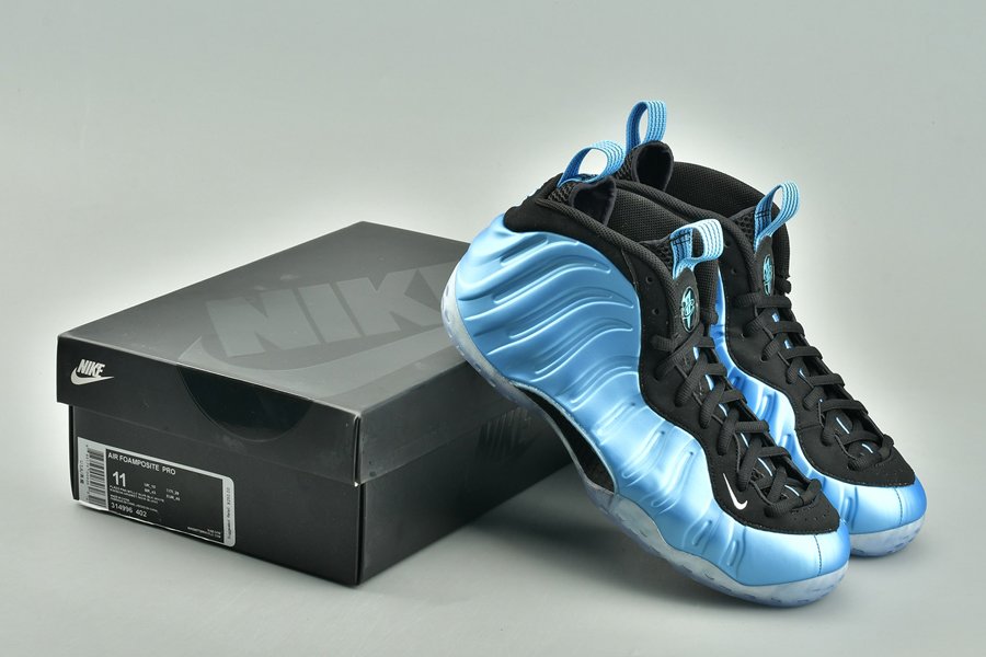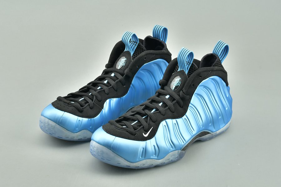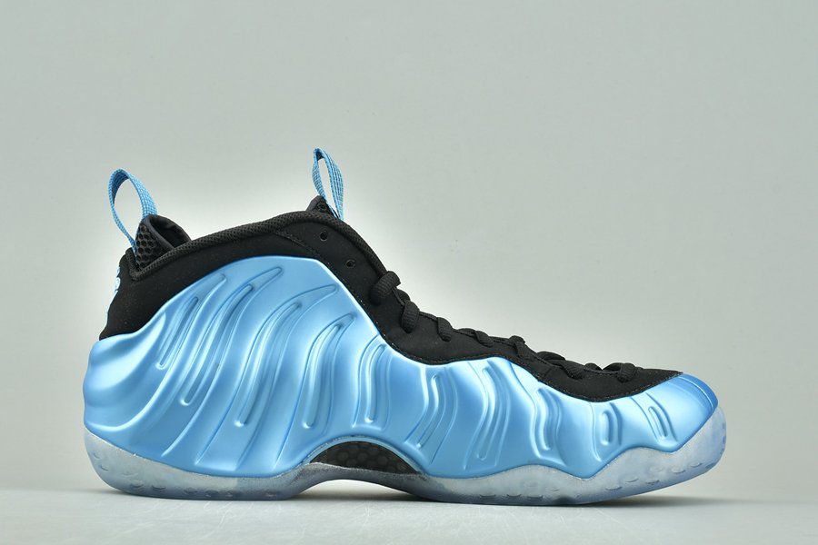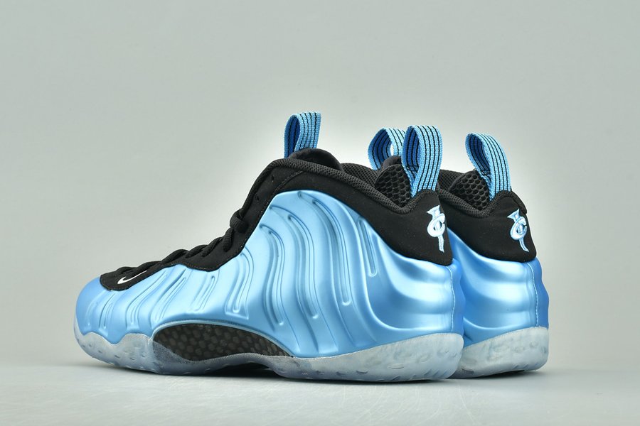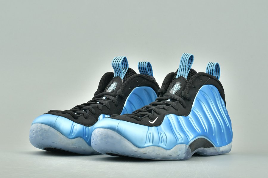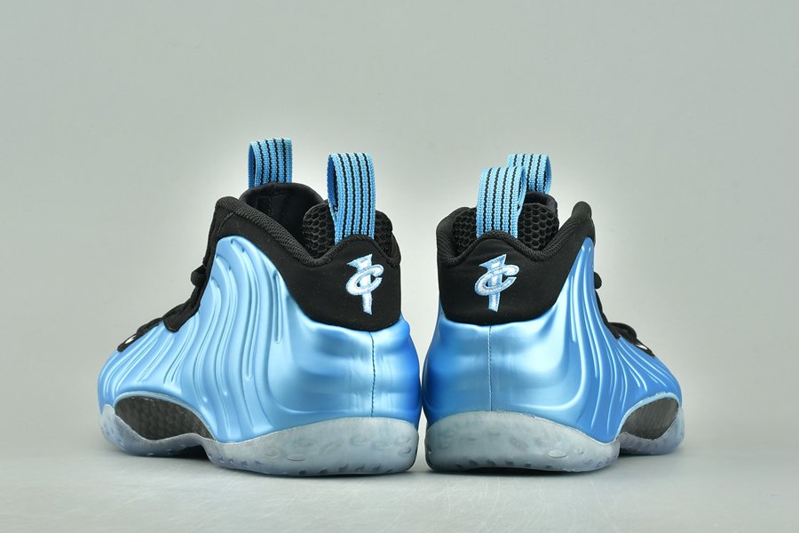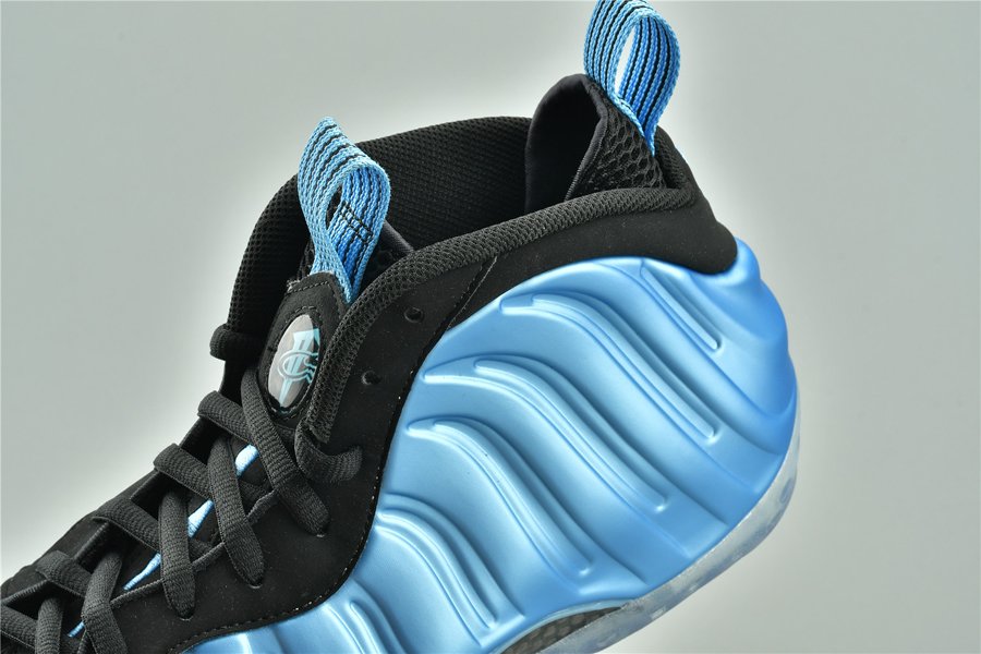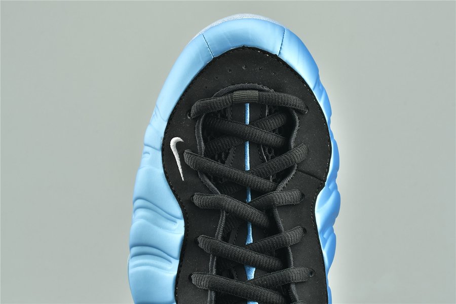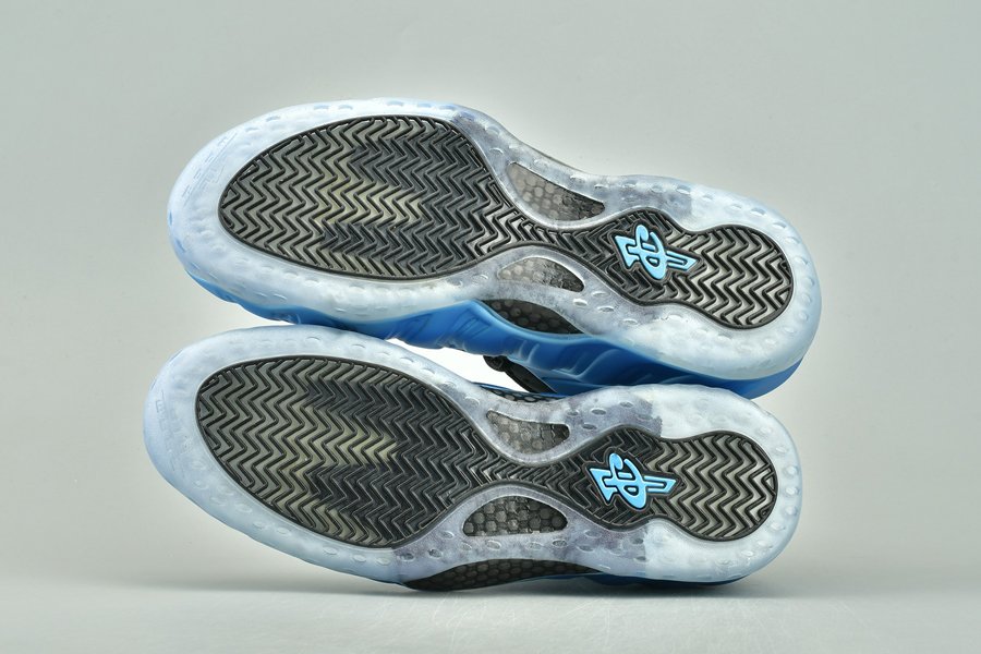 The Nike Air Foamposite One ‘University Blue’ features a black upper with a University Blue Foamposite shell and white accents. Released in February 2016, the design also includes a black carbon fiber shank and an ice-white translucent outsole.
