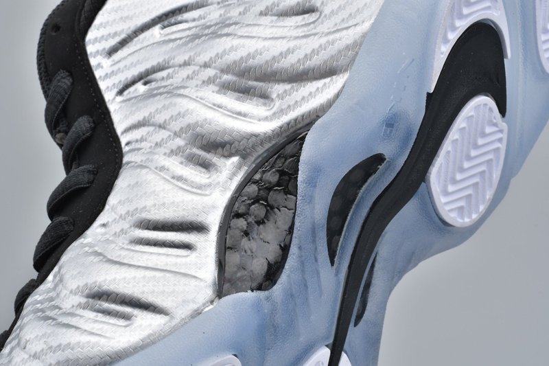 This Foamposite Pro features a Metallic Silver upper, the normal posite material looks to be replaced by carbon fiber, with Black nubuck mudguards, completed with an Icy translucent rubber outsole. You may also notice the Shiny Metallic Silver Nike SWoosh.
