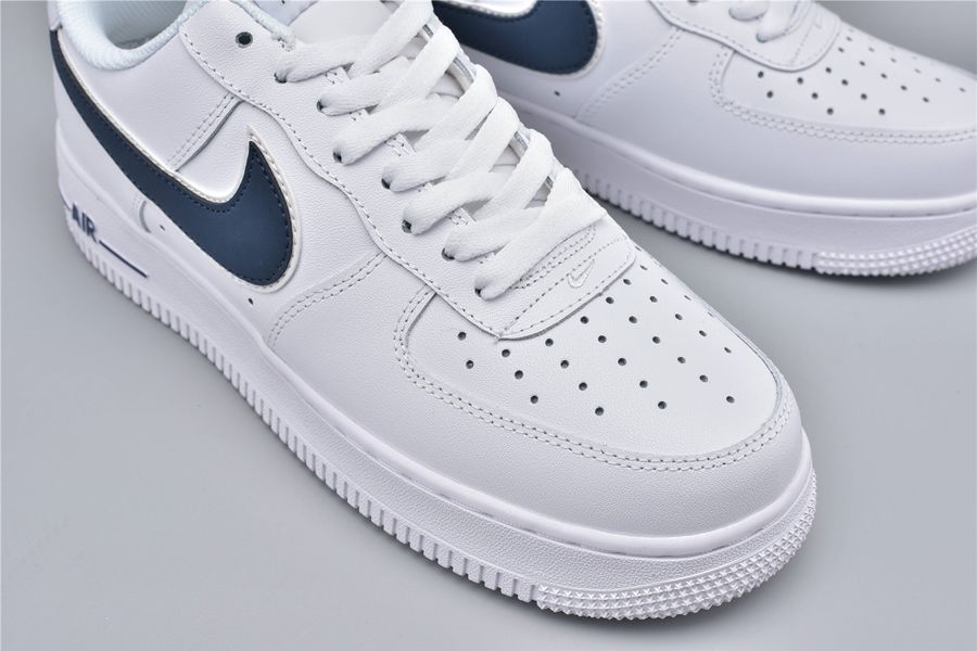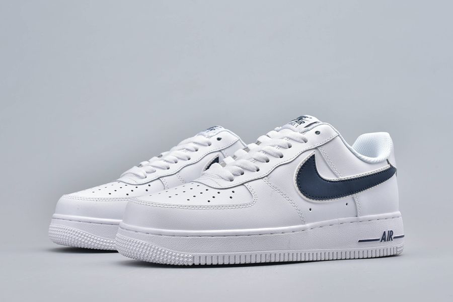 Painted in an all white colour scheme, a large blue Swoosh shoots down the lateral and medial side panels for a pop of contrast on an otherwise muted colourway. Complementary “Nike” branding graces the heel region, done up in varsity jacket style font. In terms of materials, this sneaker is crafted from premium leather, while an Air-infused midsole sits down below for additional comfort and a smoother stride.