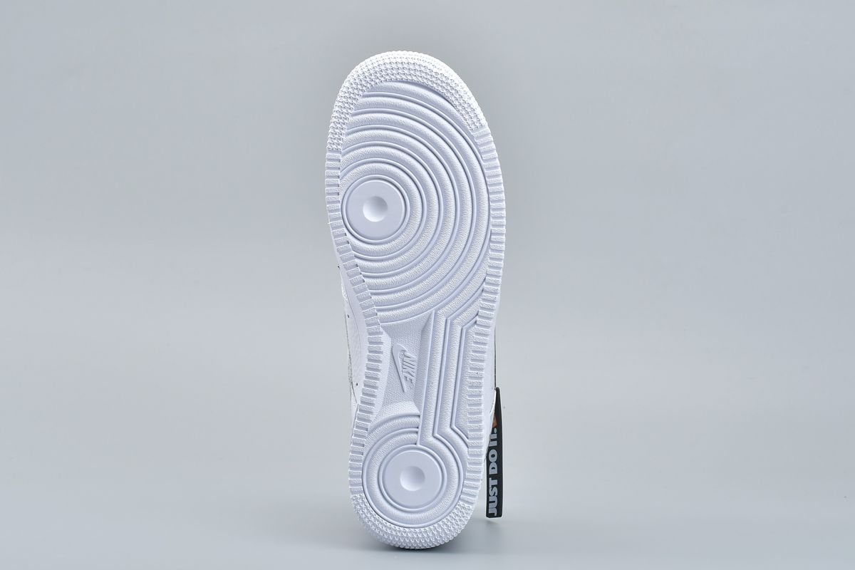 Premium tumbled leather covers the upper of the Air Force 1 07 ‘Just Do It’ Pack. The base shade retains a minimalist theme in white but thanks to the overlays and patterns, this shoe is far from understated.