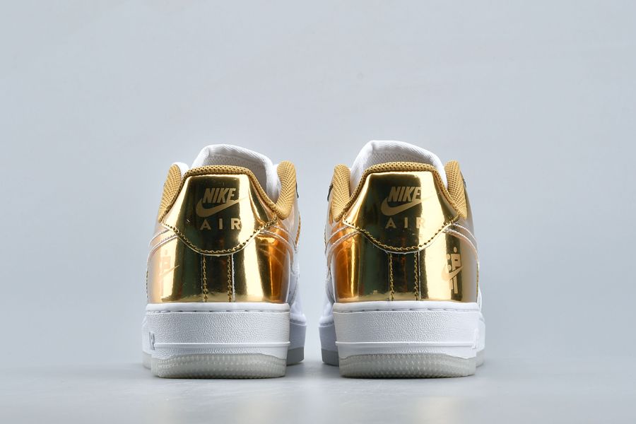 This new Nike Air Force 1 ’07 PRM is going to make you want to tap your heels just because! Inspired by Shanghai’s golden era, this regional-exclusive Air Force 1 Low comes with unique features such as the the transparent Swoosh that incorporates Art Deco elements to pay tribute to classic architecture such as Cathay Cinema and Paramount Cinema in the 1920s and 1930s. The rest of the shoe consists of a patent leather and ingenuity leather upper decorated with metallic elements on the heel/back portion of the shoe, insole branding and tongue tag. White laces, a White midsole, a Light Gum sole and Gold dubrae complete the look.