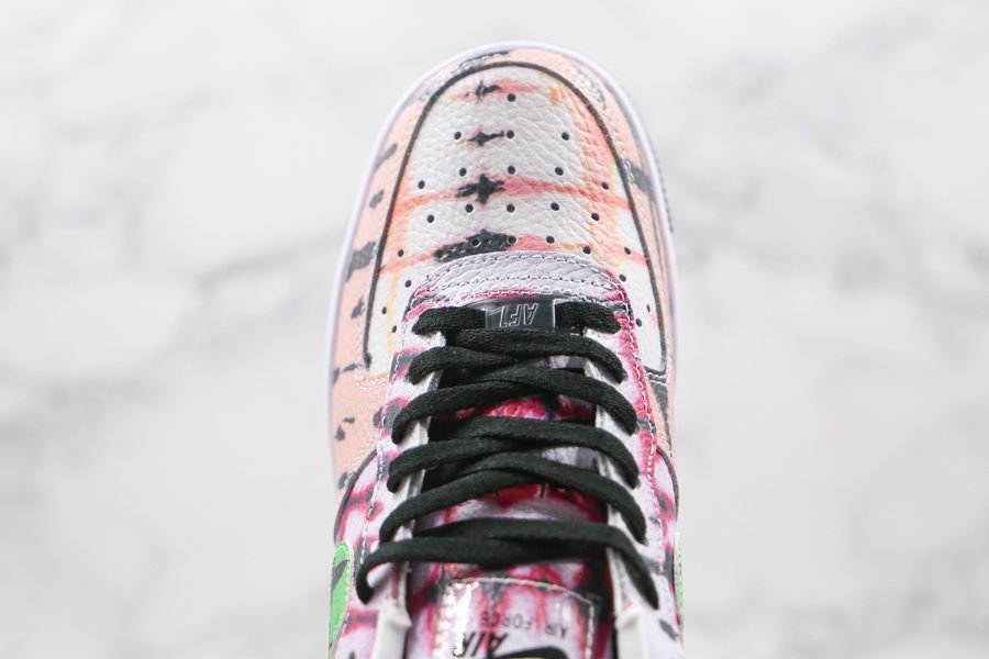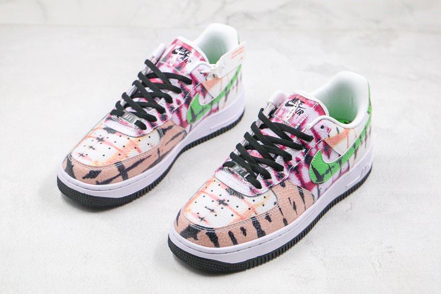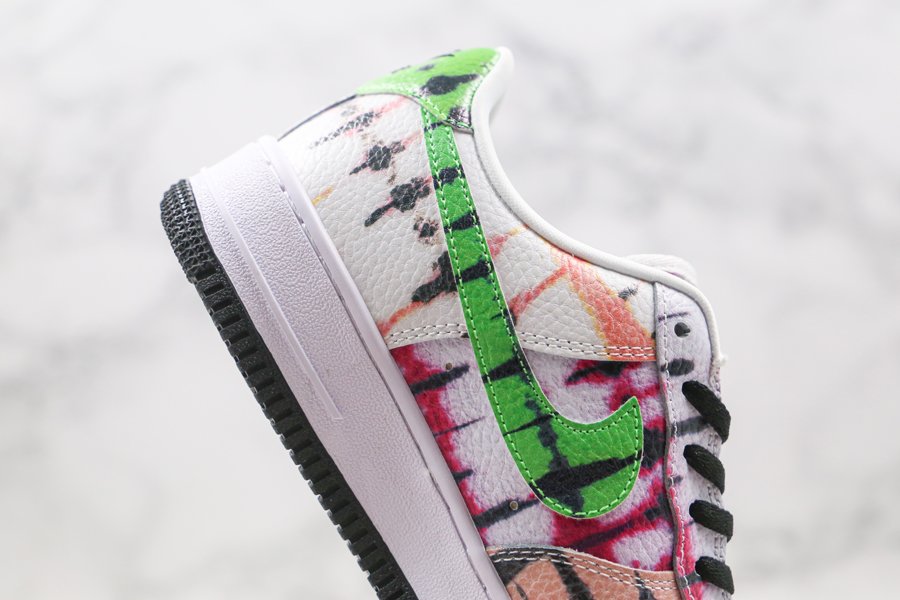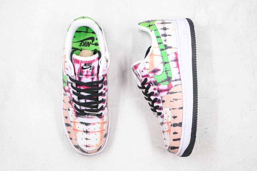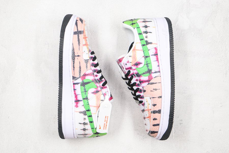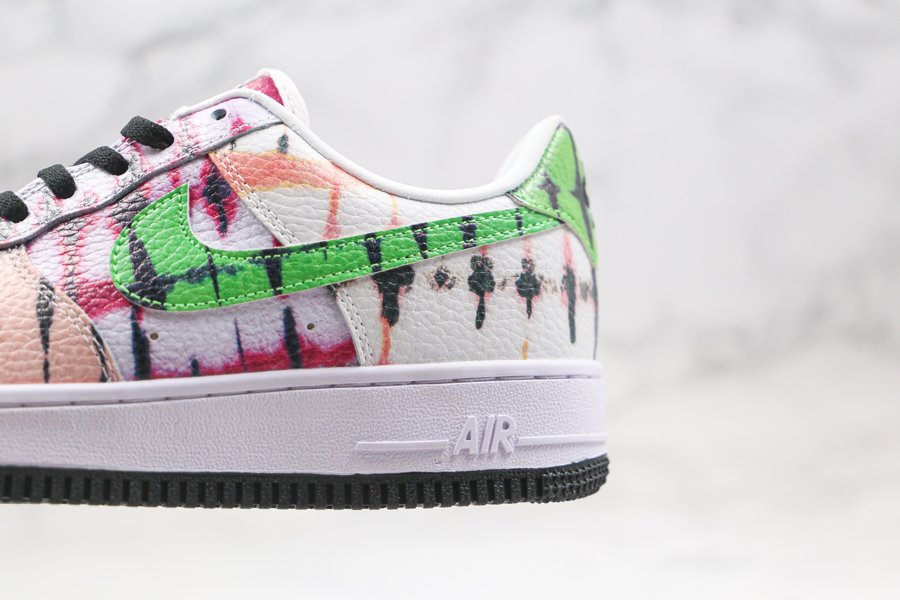 The pair, which features impossible-to-tye-dye leather construction, arrives with a myriad of prints that mimic the age-old process. Tumbled white leather makes up the bulk of the pair, with colored leathers at the tow (peach) and Swoosh/Heel overlay (lime). Each panel sports its own unique tie-dye print — even the tongues — most of which arrive alongside shades of red. Elsewhere, finishes remain pretty stock-standard, with white liners, white midsoles, and black rubber outsoles completing the design.