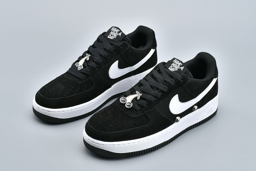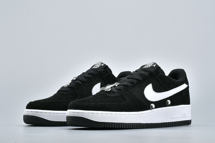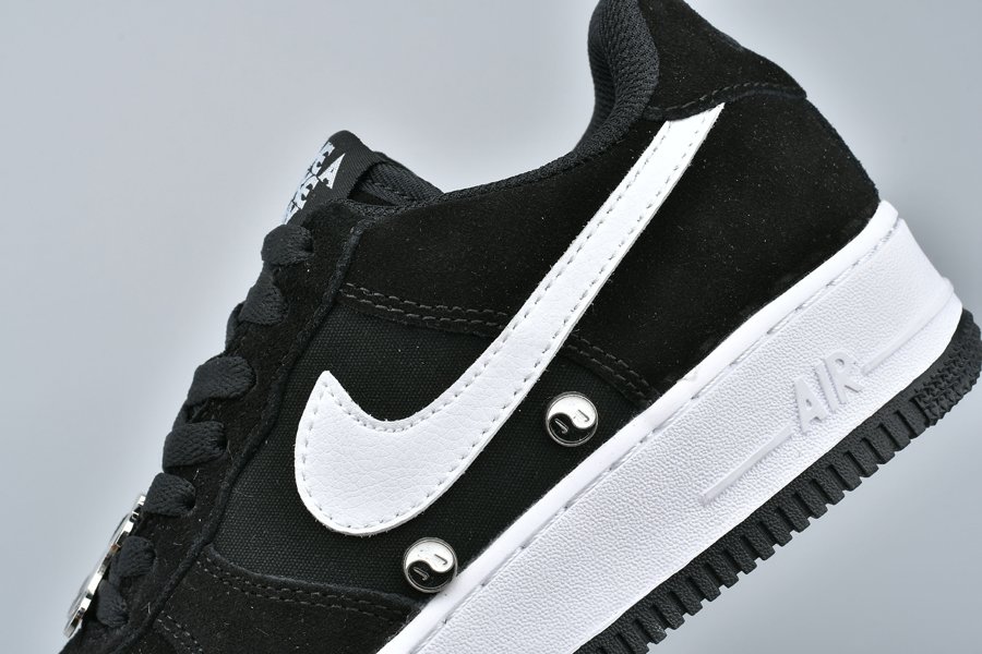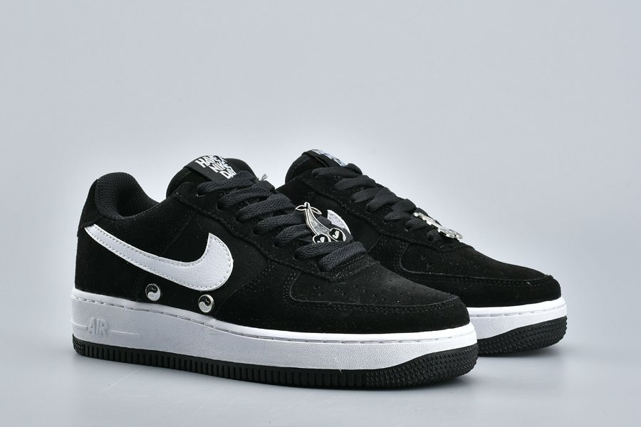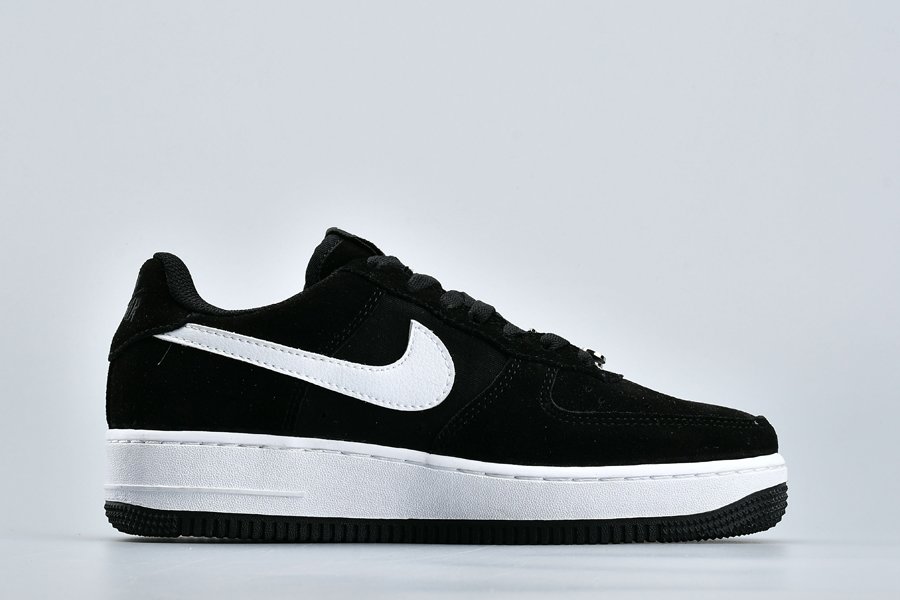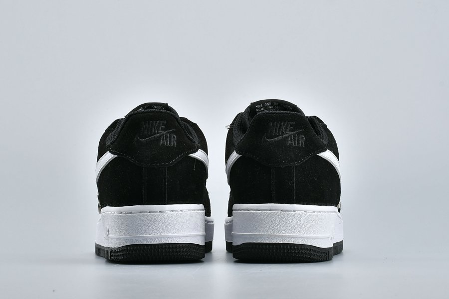 The Air Forces features a Black/White colourway made from black suede with mesh panelling. A monochrome colour palette keeps the look simple and stylish. So while the majority of the upper is black, the white leather Swoosh that dominates the sidewalls brings a stark contrast.