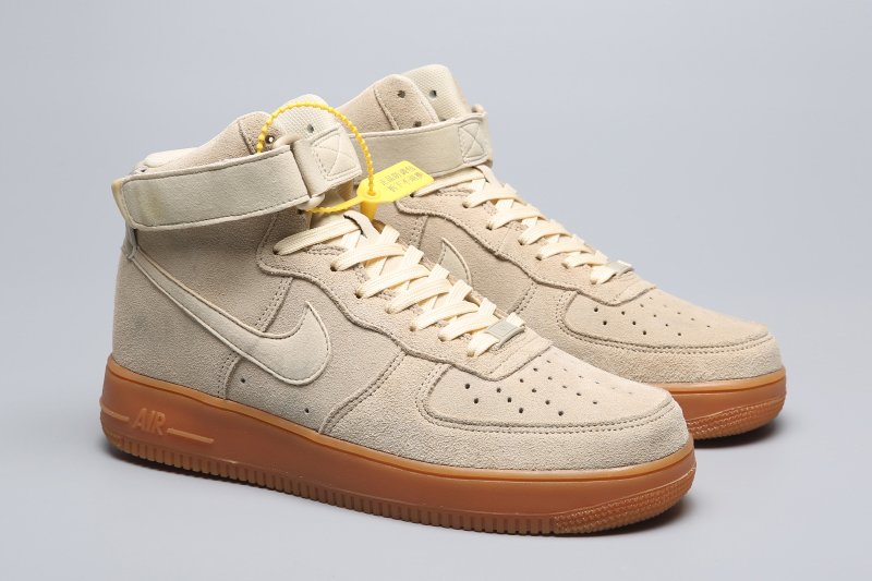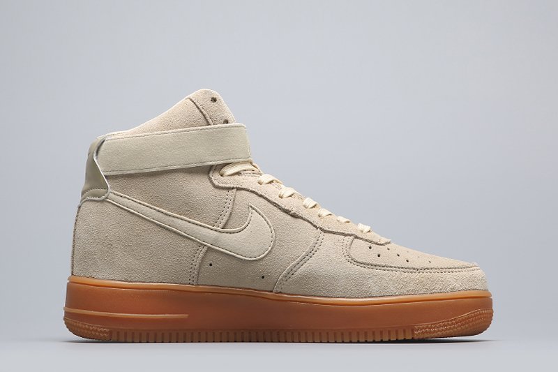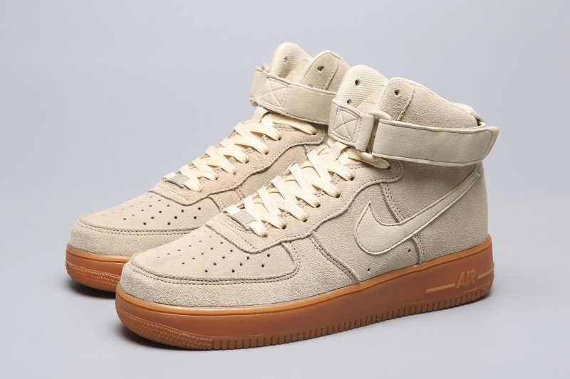 The Nike Air Force 1 07 Suede ‘Mushroom’ takes the classic 1982 model and elevates it with a tonal execution on a premium suede build. The refined tan colorway extends to the leather Swoosh, Nike Air branded heel tab and adjustable Velcro ankle strap. The high-top silhouette is mounted on a gum rubber sole unit, which packs a concealed Air sole unit for lightweight cushioning.