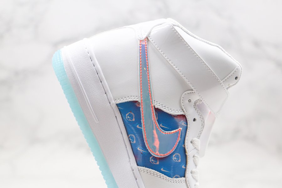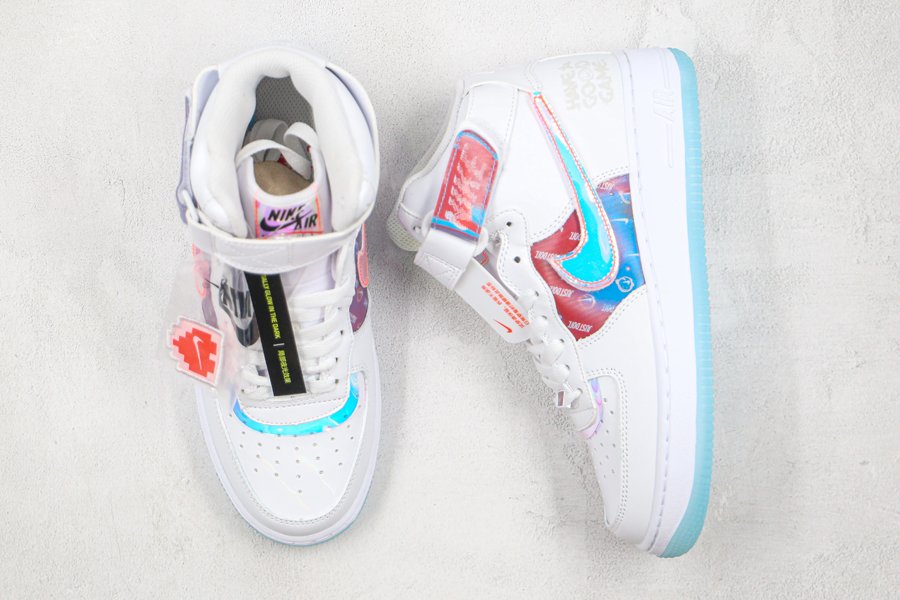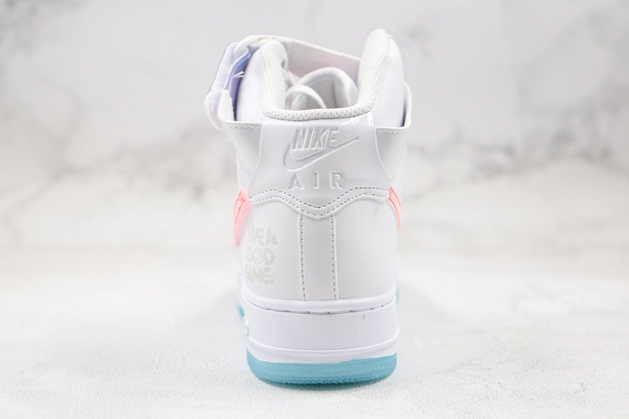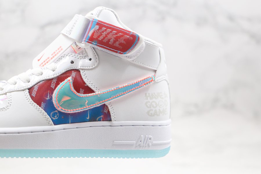 As if that myriad of finishes wasn’t enough the striking pair arrives in an ominous jet black, with mid panels, removable Swooshes, tongue tags, straps, and vamp overlays all donning an iridescent finish. Of those, the mid panel and straps, along with the pair’s special dubraes, all arrive with a holographic effect. White midsoles and its smokey-translucent rubber outsoles are by far the simplest finish that the pair possesses, with the most low-key coming by way of the pack “Have a Good Game” motif glazed on the lateral heel in a tonal black sheen.
