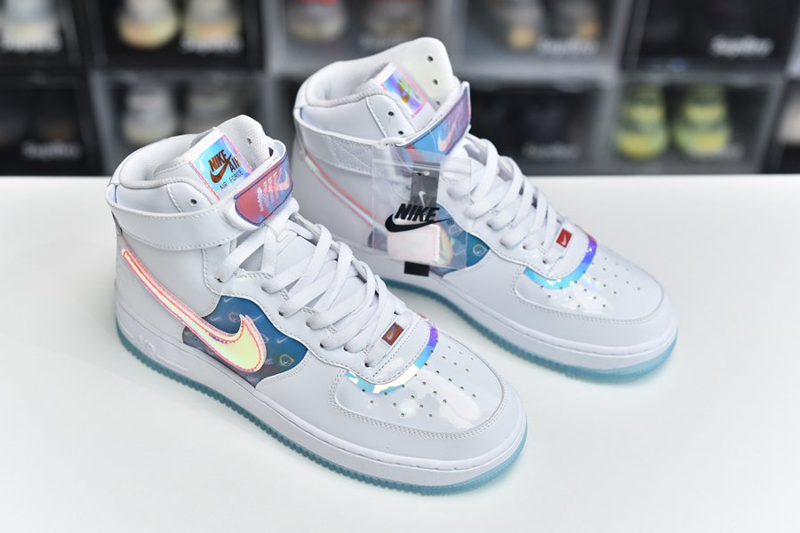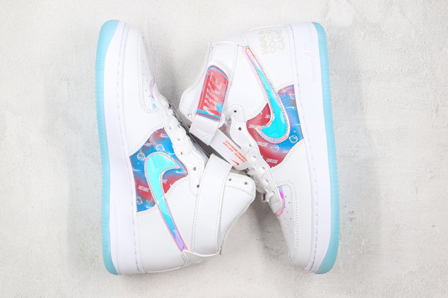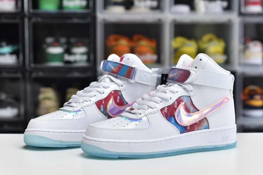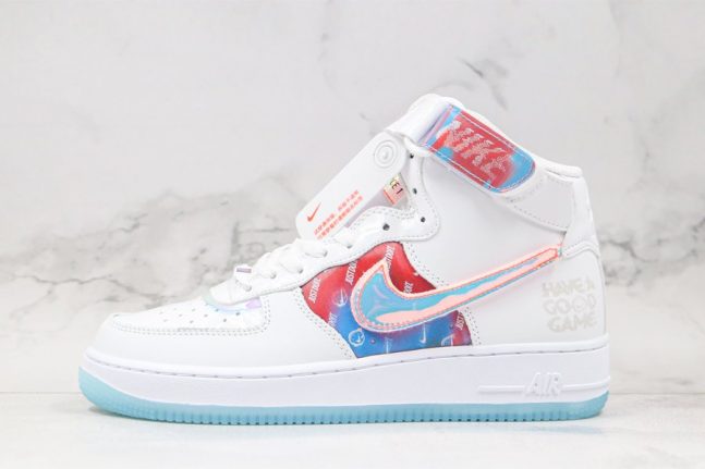 As if that myriad of finishes wasn’t enough the striking pair arrives in an ominous jet black, with mid panels, removable Swooshes, tongue tags, straps, and vamp overlays all donning an iridescent finish. Of those, the mid panel and straps, along with the pair’s special dubraes, all arrive with a holographic effect. White midsoles and its smokey-translucent rubber outsoles are by far the simplest finish that the pair possesses, with the most low-key coming by way of the pack “Have a Good Game” motif glazed on the lateral heel in a tonal black sheen.
