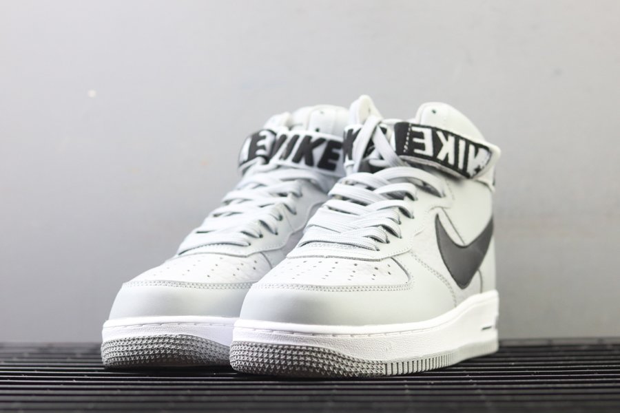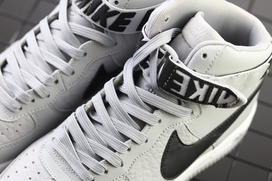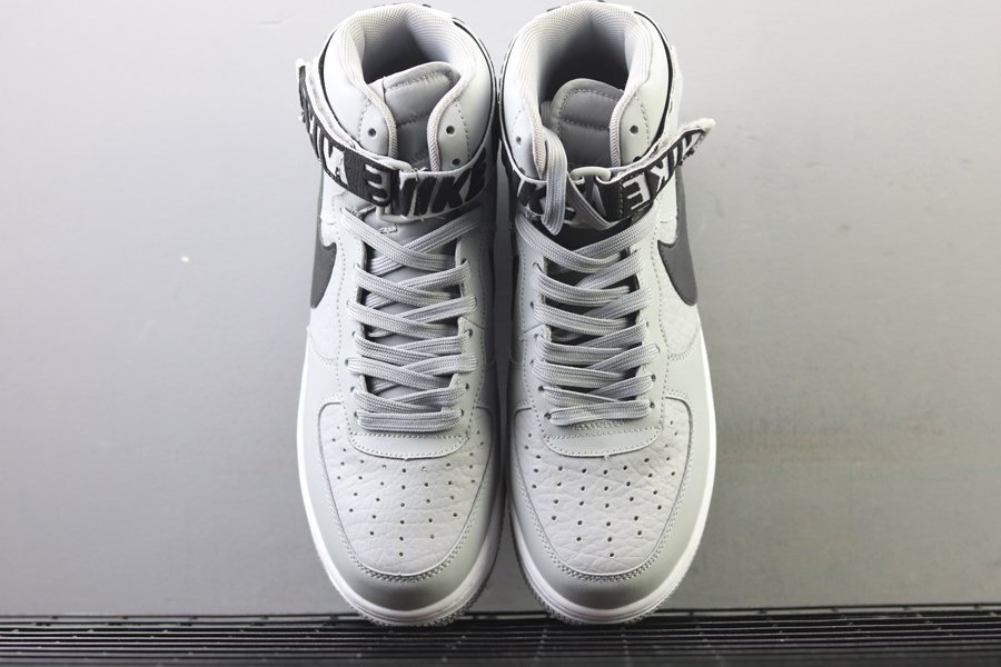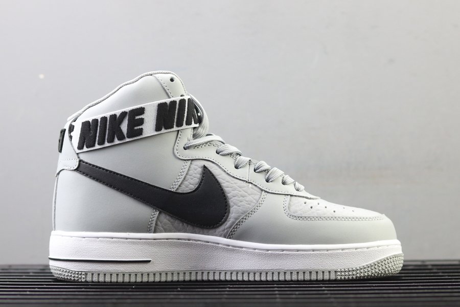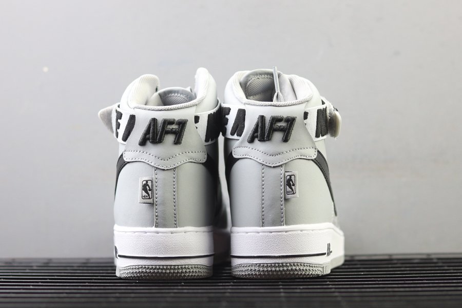 This Nike Air Force 1 High Statement Game comes covered in a Flight Silver leather all throughout the upper with Black detailing on the jumbo Swoosh logos, the embroidered “NIKE” branding on the ankle straps, and the “AF-1” writing on the heels. Finishing details include an NBA logo on the heels, White rubber midsole, and a grey rubber outsole.