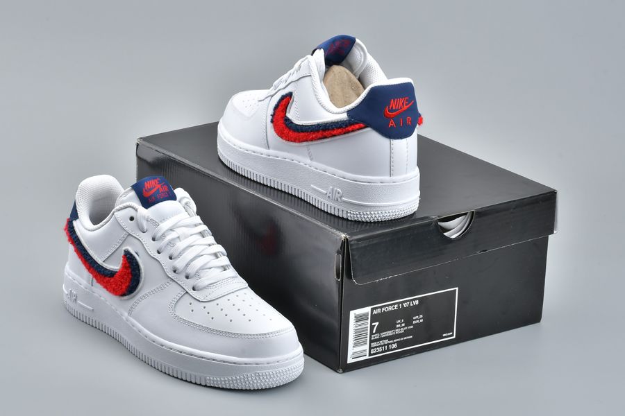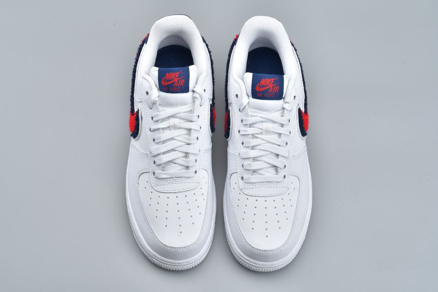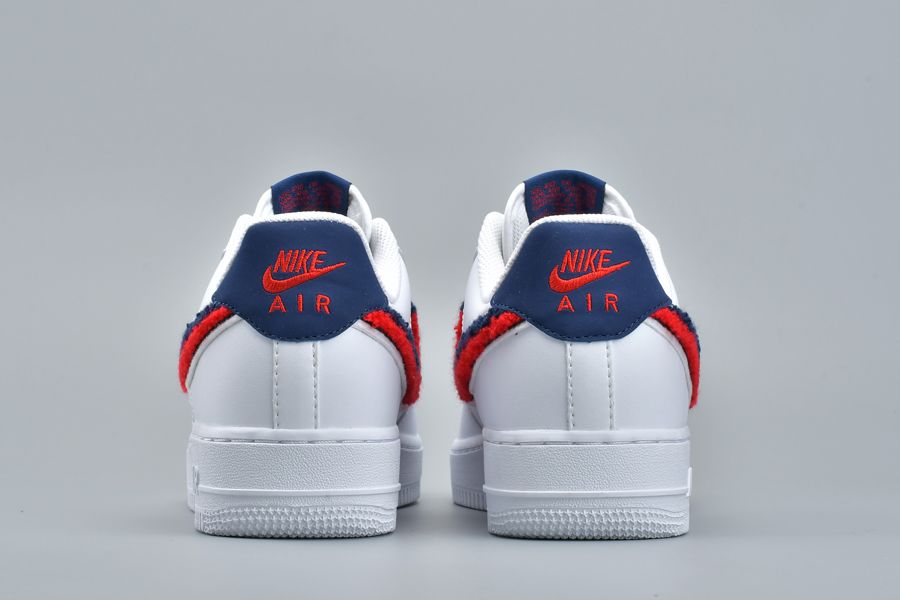 This Nike Air Force 1 Low 3D Chenille Swoosh features a 3D Chenille Swoosh on the sides. Coming in white, university red and blue void, they feature a white-based leather upper with blue and red accents on the “Swoosh” on the sides, back heel tab and tongue tag.