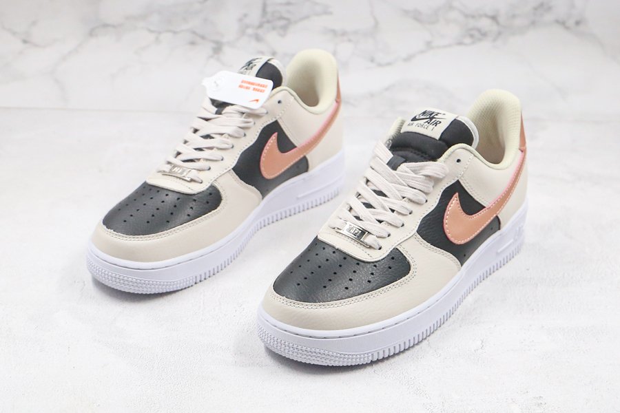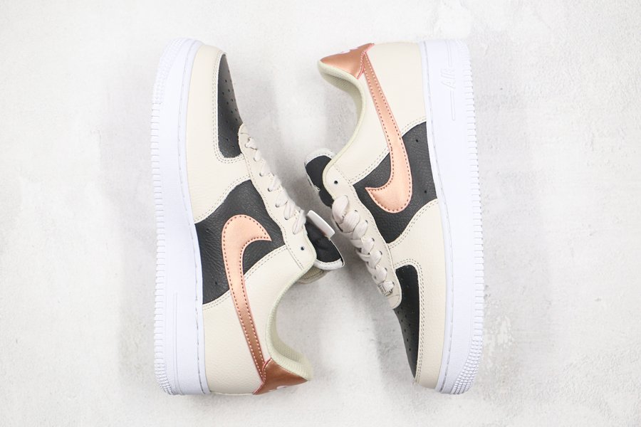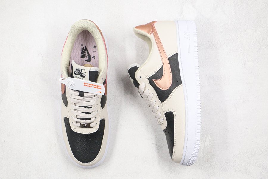 Nike Air Force 1 Low Beige Black With Copper Swooshes