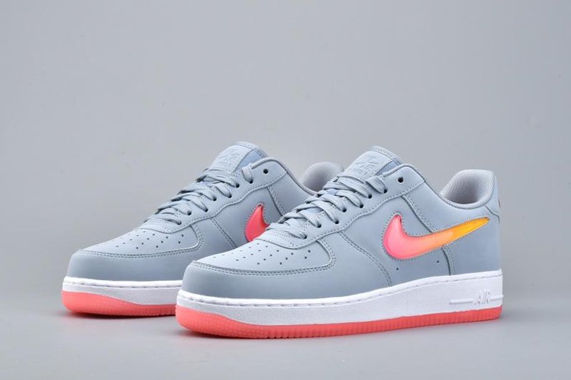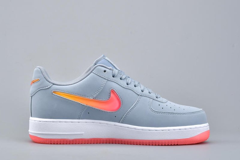 Finely crafted from premium leather, the Nike Air Force 1 Low Jewel Obsidian Mist Hot Punch University Red upper is doused in an all grey hue. A jewelled Swoosh features on the lateral and medial sides, painted in a glossy orange and red hue, and this is complemented by additional branding around the heel and a red rubber outsole. Down below, the classic Air midsole is present for endless comfort.