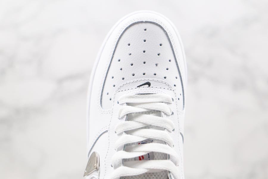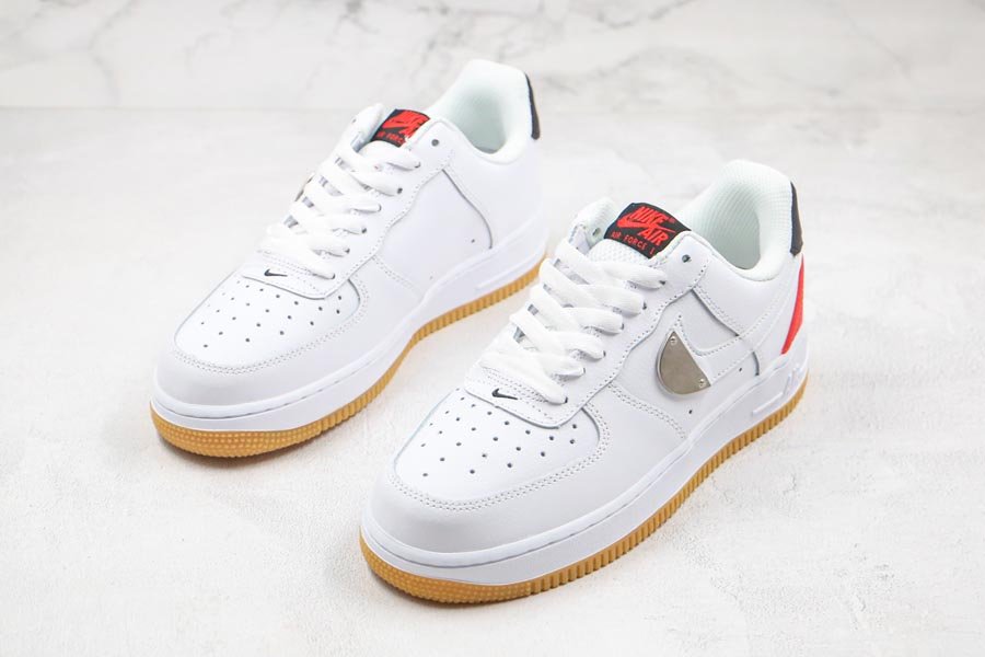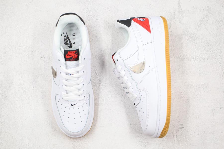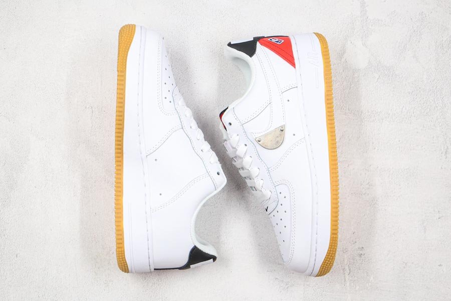 Shown up top, the Nike Air Force 1 Low from the NBA Pack comes dressed in a White, Bright Crimson and Black color scheme. Design details include the White leather upper paired up with matching mesh tongues. Details on the shoe include the metal plate placed on the tip of the lateral Swoosh, the Crimson heels on the lateral sides and tongue branding, the Jerry West insignia both on the throat and lateral heels, White leather label in the rear and Gum rubber outsole.