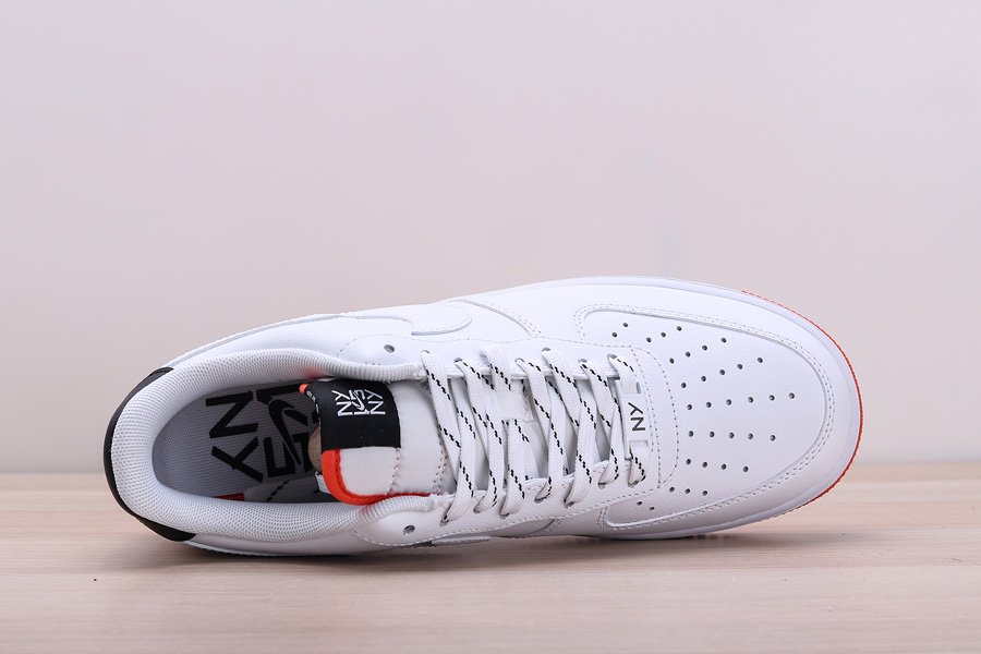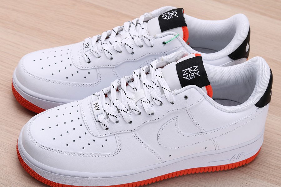 The Air Force 1 rocks a cracked pavement-like texture across its white leather base – paying homage to the Concrete Jungle that is New York – with uses of the pack’s black/orange theme used sparingly for its trimmings. “NYC” lace dubraes and eroded Swoosh heel detail add to the Big Apple theme. This AF1 is completed with a special NY vs NY graphics on the insoles, with the AF1 also sporting it on the tongues.
