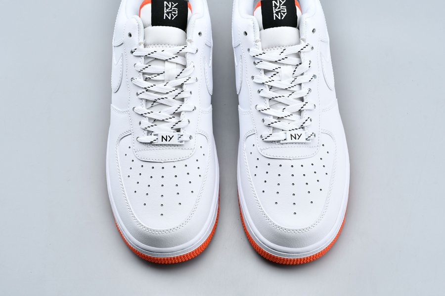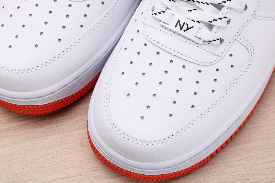 The Air Force 1 rocks a cracked pavement-like texture across its white leather base – paying homage to the Concrete Jungle that is New York – with uses of the pack’s black/orange theme used sparingly for its trimmings. “NYC” lace dubraes and eroded Swoosh heel detail add to the Big Apple theme. This AF1 is completed with a special NY vs NY graphics on the insoles, with the AF1 also sporting it on the tongues.