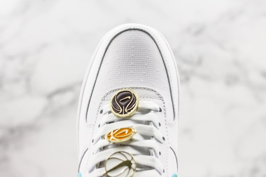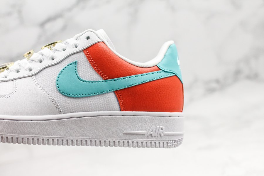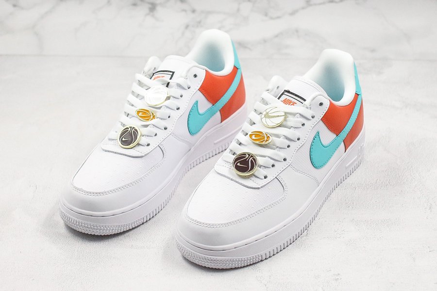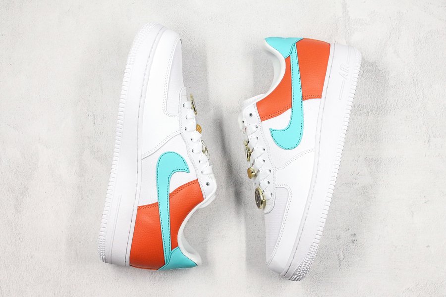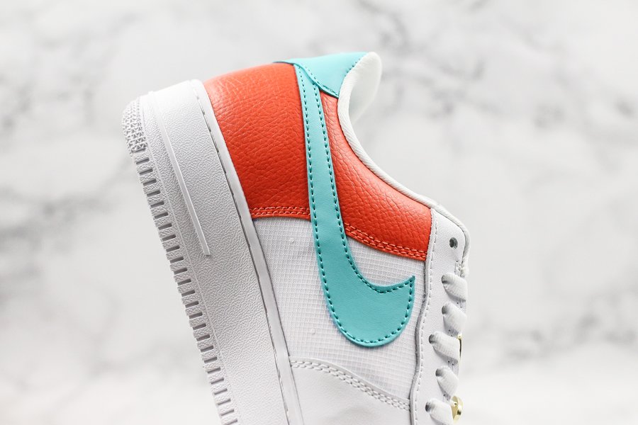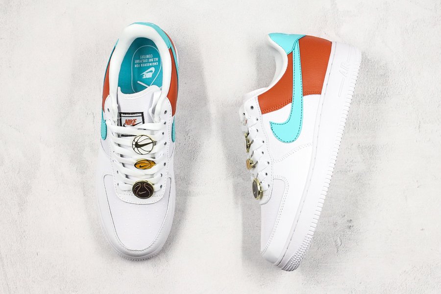 Dressed in a summer-appropriate White, Light Aqua, and Cosmic Clay color scheme, this pair starts off with a White leather and textile base that is then accented by the Teal hits on the Swoosh and heel, along with the Burnt Clay accented on the lower half of the heel. Not only does this Nike Air Force 1 Low come with a new branded tongue tag, the shoes also come with three of the aforementioned Nike Basketball lace locks. White laces and a classic White AF1 rubber sole complete the look.