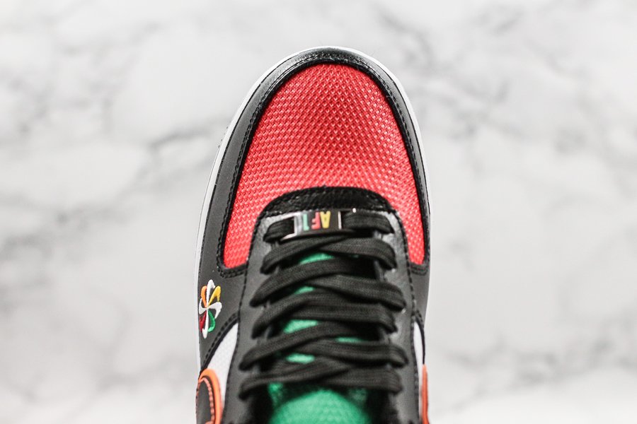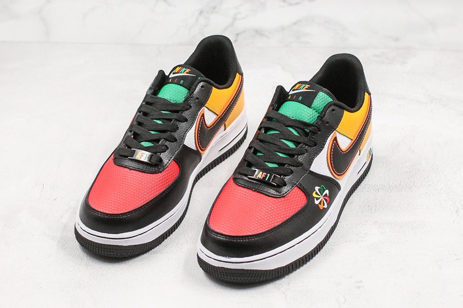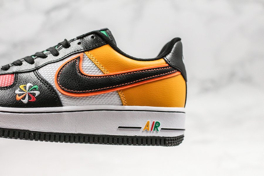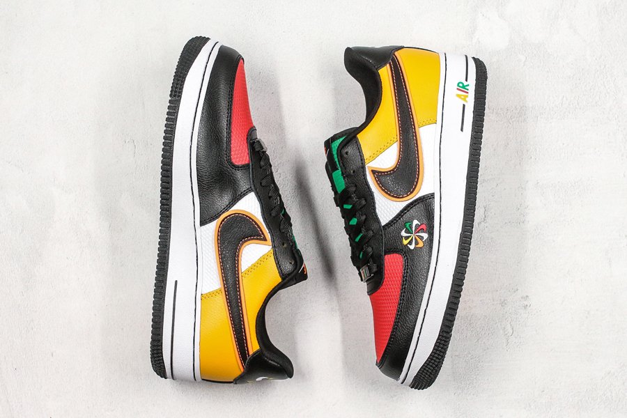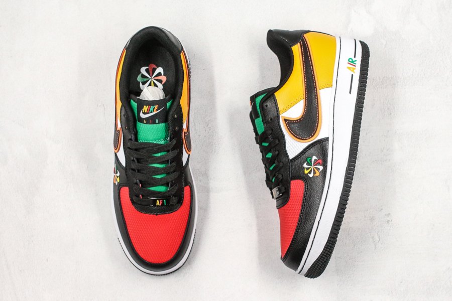 Featuring a tri-colored plush mesh base — red at the toes, white at the mid panel and green at the tongues — the pair comes overlayed with ultra buttery black leathers in the front end, and vivid yellow in the rear; colors consistent with the other offerings from the Sunburst Pack. Branding hits take on all new cues: the sides Swooshes arrive with both contrast stitching and vibrant red outlines, while tongue, heel, dubrae, and midsole AIR branding all arrive multi-colored. Pinwheel logos arrive on the lateral forefoot and insoles, with a crisp white midsole and black rubber outsole completing the design.