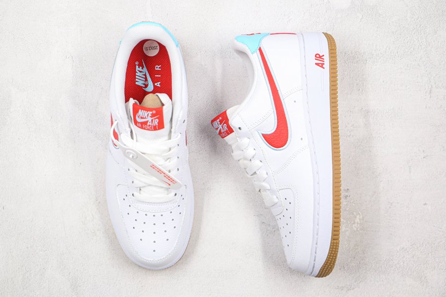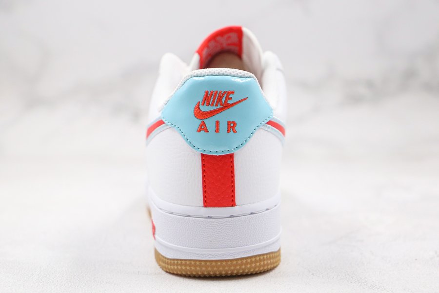 Mainly white, the model reveals colourful details such as the side swoosh and the signature on the back of the silhouette. Like its name, the pair is dressed in white, red and an almost turquoise blue reminiscent of glaciers. A vintage-inspired gum sole completes the design.