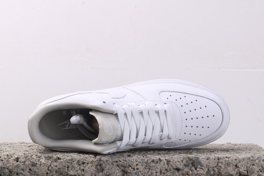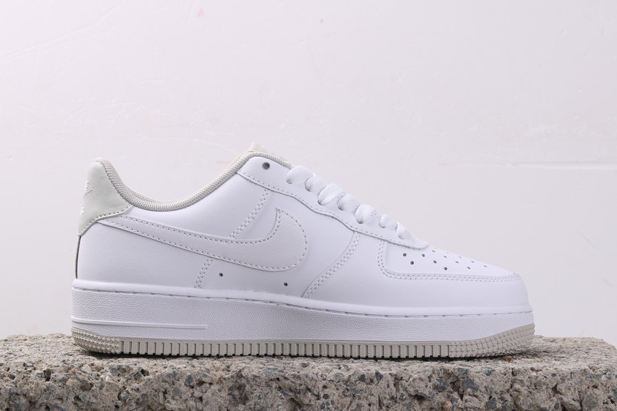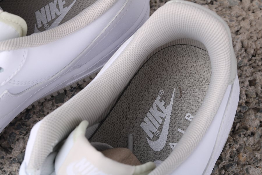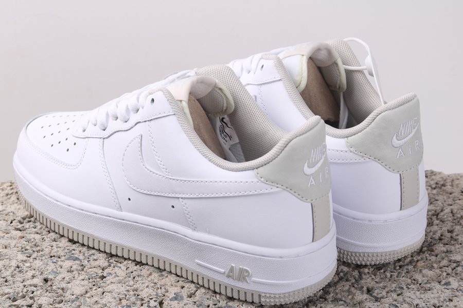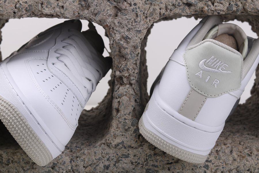 The Nike Air Force 1 Low “Light Bone” is crafted from white leather and paired with matching tonal Swoosh branding, tongues, heels, and midsoles. Subtle hits of “Light Bone” then find their way onto the tongue tags, inner liner, heels, rubber outsole and “AIR” branding on the midsole.