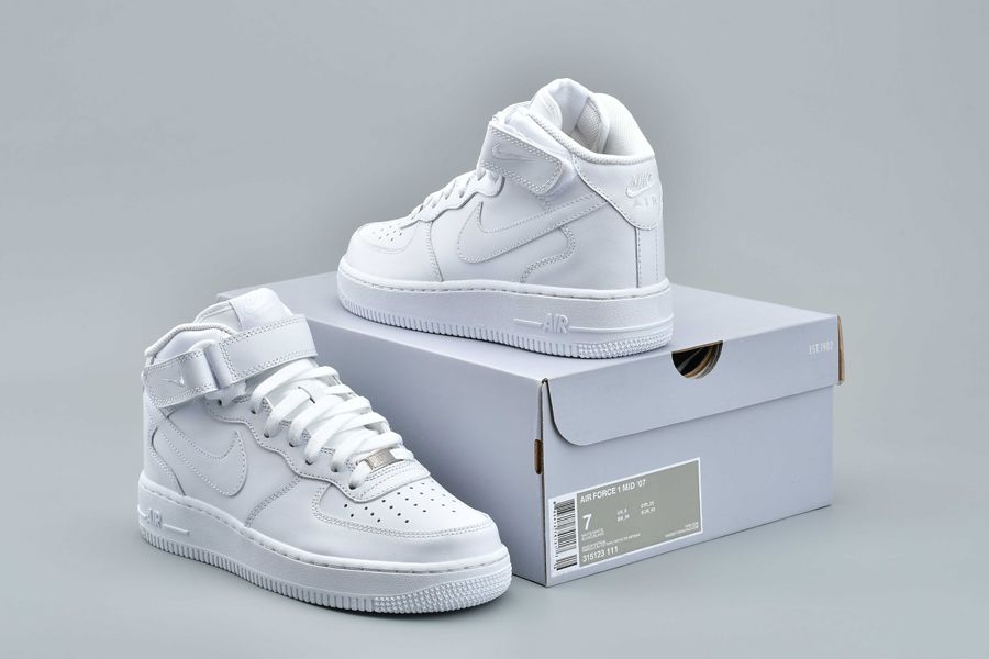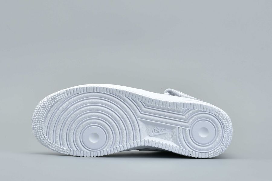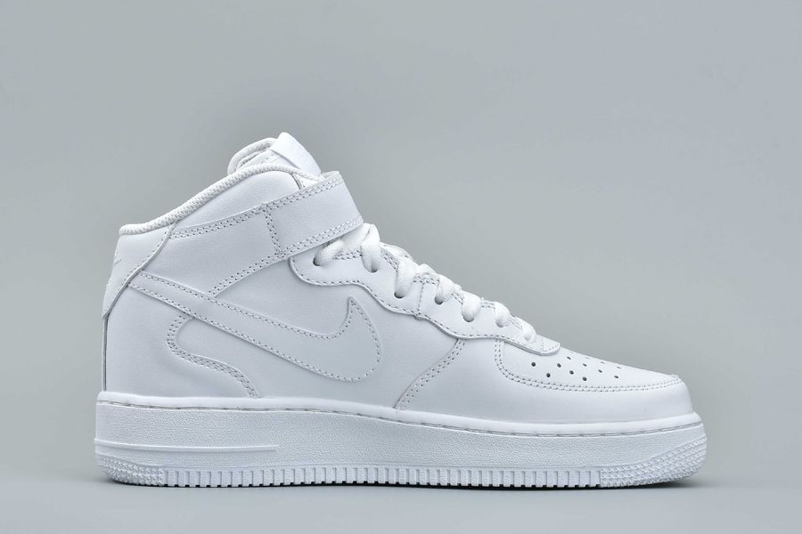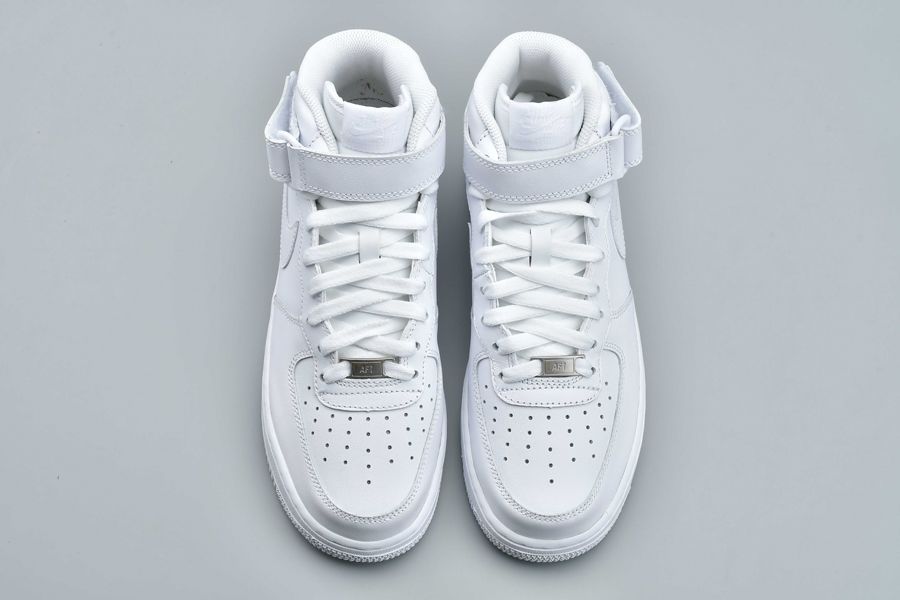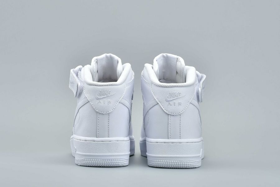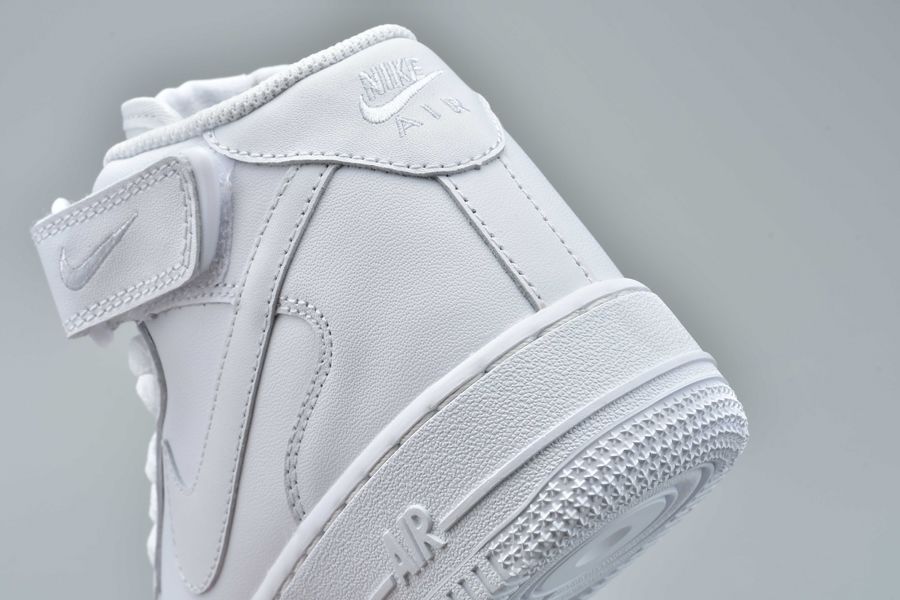 This Nike Air Force 1 Mid comes in your clean all White theme which automatically receives the ’Triple White’ nickname. Throughout we have a smooth full grain leather while perforations land on the toe. Other highlights includes a small embroidered Nike Swoosh on the strap while White covers the midsole and outsole.