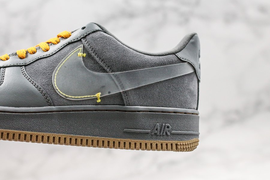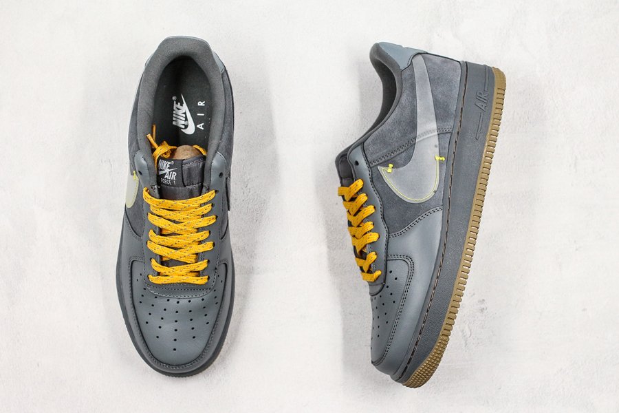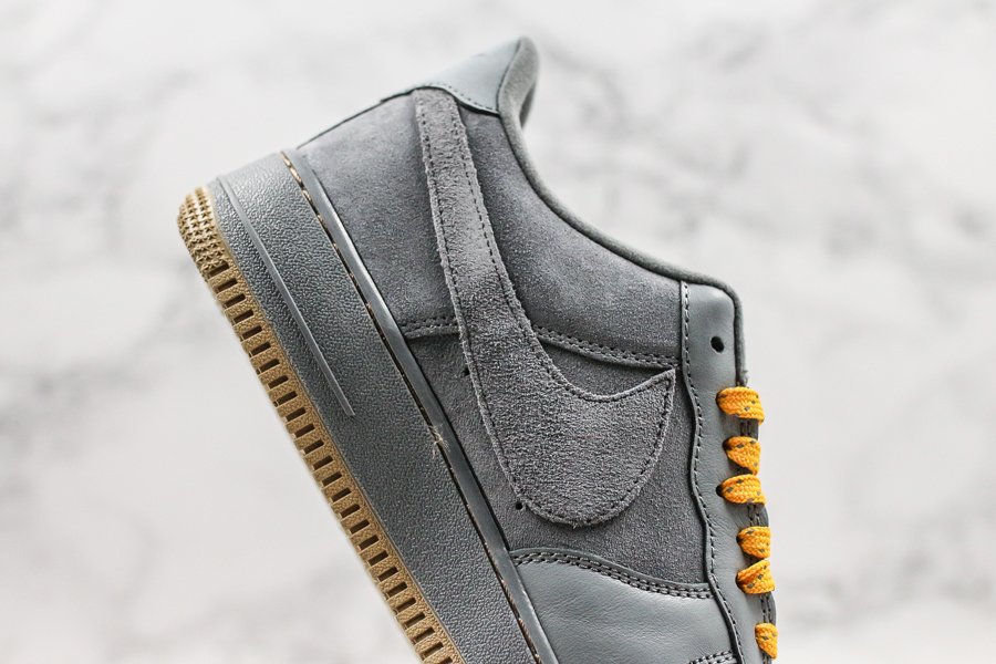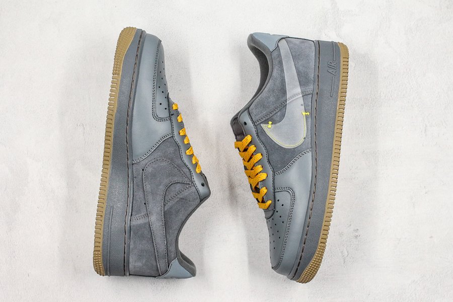 Painted in a fully greyed out palette, the materials used on the Air Force 1 Low Cool Grey Yellow are just as premium as it gets.The front half of the shoe is made from a tumbled leather that’s soft to the touch, while the rest of the upper is dressed up in smooth suede that’s oozing with luxury. Along the lateral side, you’ll find a full grain Swoosh that’s been attached very subtly using yellow stitching, introducing a deconstructed vibe that’s all the rage these days.