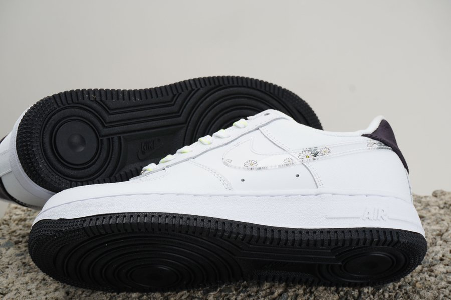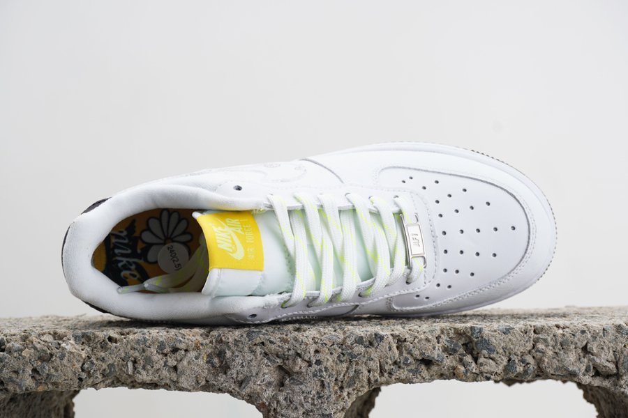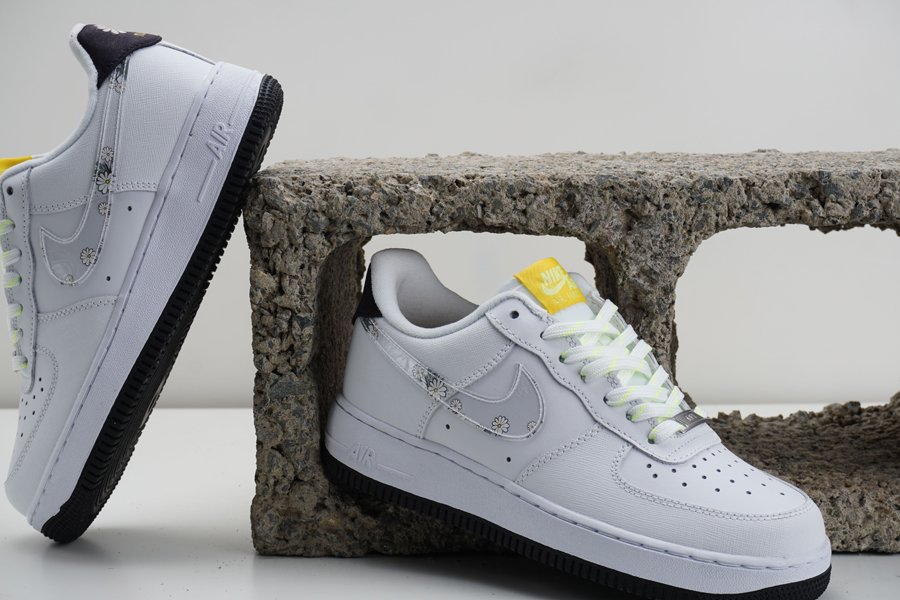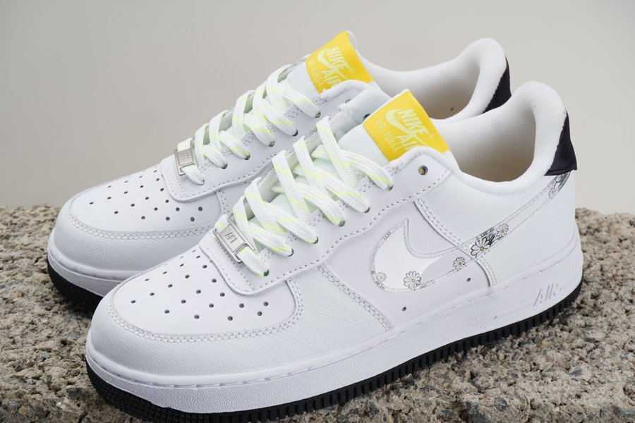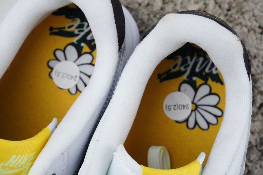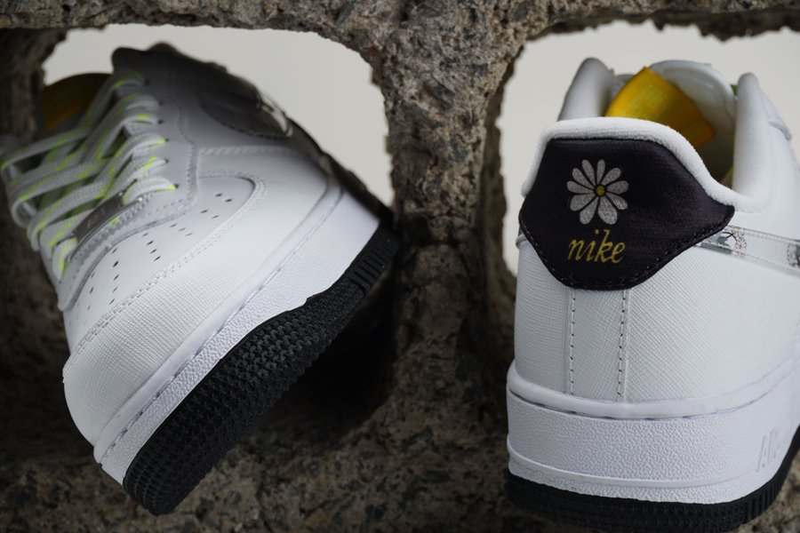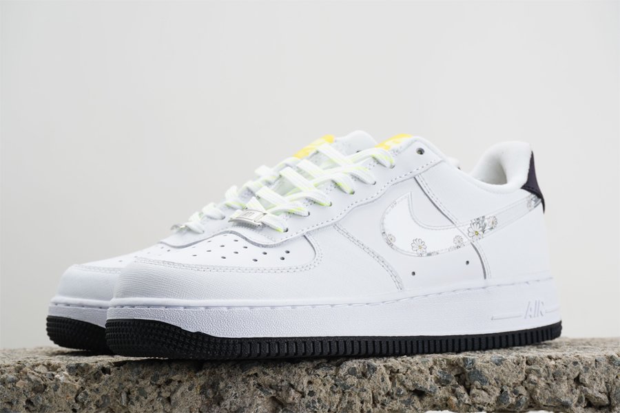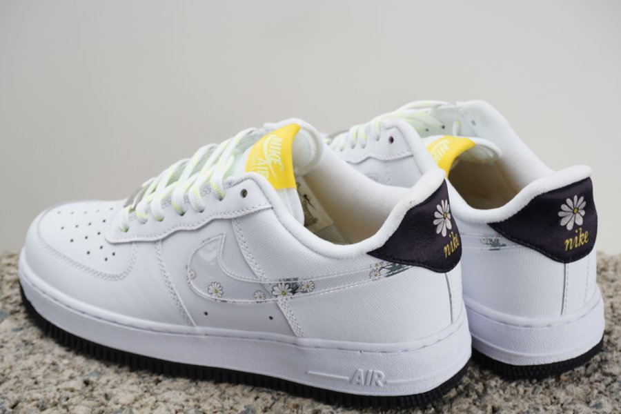 The Nike Air Force 1 Low opts for a White leather upper accompanied by a translucent Swoosh revealing floral graphics. Other details on the shoe include the Black accents on the heels and outsoles, Yellow tongue tags and Volt-striped laces. This pair comes with daisy icons strategically placed throughout the shoe.
