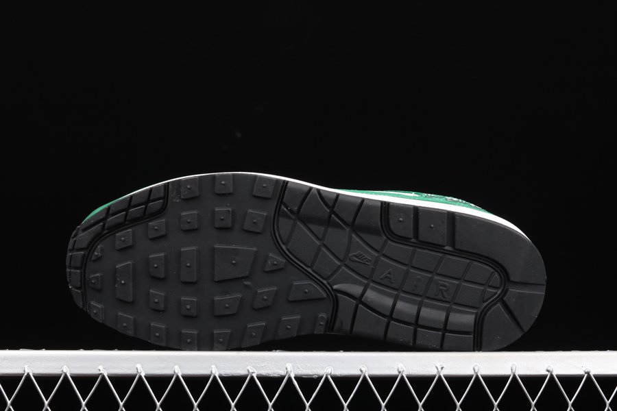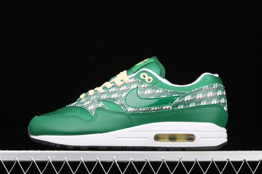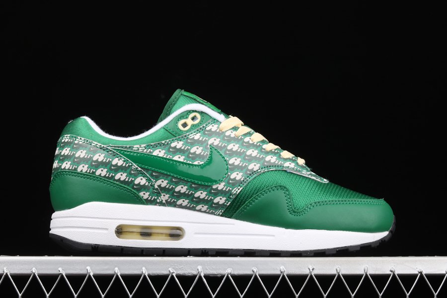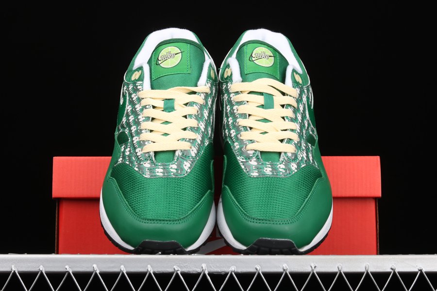 We can see that the uppers here are crafted from a neat mix of leather, mesh and synthetics for a well-rounded look, with the vintage-looking Air branding being the centre of attention. Classic Nike motifs such as the Swoosh are present on both the lateral and medial sides, with additional Nike Air text embroidered onto the heel. The limeade pine green upper is finished with cream laces for a perfect contrast. The pair are modelled on one of the most famous AM1’s of all time, the Powerwall Lemonade, with this year’s version switching out the yellow from the original release for green (lime). Nike Air branding is present at the tongue and heel of the shoe, with the look finished with yellow laces, paying homage to the original theme.