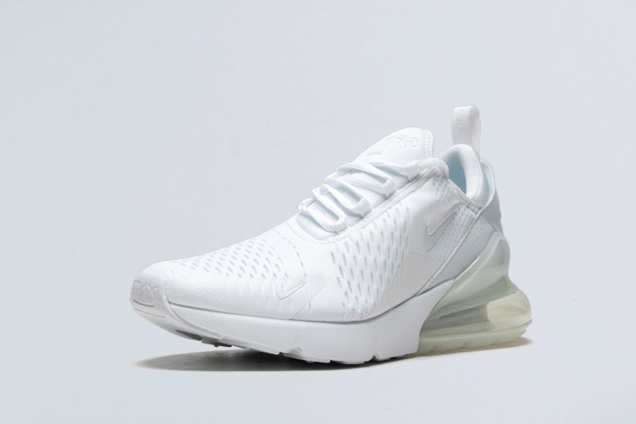 Sneakers don’t get more lustrous than the Nike Air Max 270 Triple White. This stark colourway is perfect for the upcoming summer months, going well with almost any get up. Championed as Nike’s first Air Max lifestyle sneaker (built for aesthetic not athletics) the Air Max 270 has an exposed Air max cushioning sole with 270 degrees of visibility, hence its name. Known in the sneakerhead community as one of the most comfortable Air Max models, the 270 is a comfortable, stylish and lightweight option. Nike’s most recent edition to the ranks of their 270 colourways comes with a crystal clear air unit which sits beneath a sleek, neoprene upper. Perforations are found throughout the upper to offer some beauty and breathability to this tonal sneaker. Finishing off this gorgeous sneaker is a pair of matching tonal laces and Nikes classic Swoosh branding found on the lateral upper.
