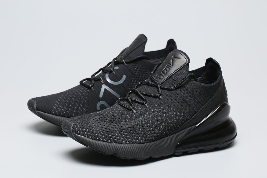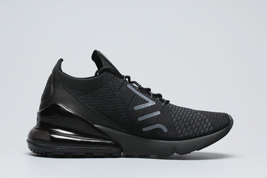 Painted in a stealthy colourway, the Nike Air Max 270 Flyknit Black boasts a completely redesigned Air unit in the midsole, which appears to be quite similar to the full length bubble seen on the Air VaporMax. Considered to be a lifestyle sneaker with a convenient slip on construction, this murdered out Air Max 270 is dressed in a breathable Flyknit, with blacked out Swoosh branding along the side panels. Subtle “Air” and “270” branding can be seen around the heel portion. Hyperfuse detailing on the mudguard and toe region rounds off the design.