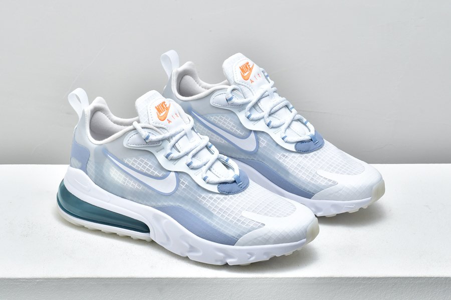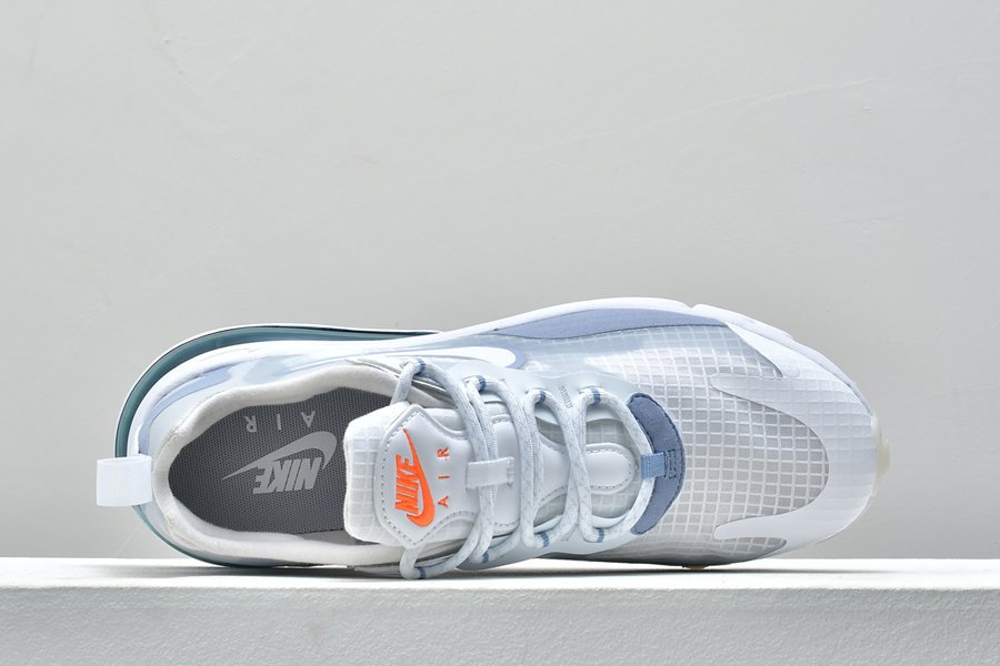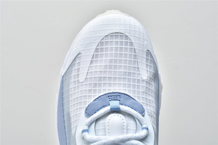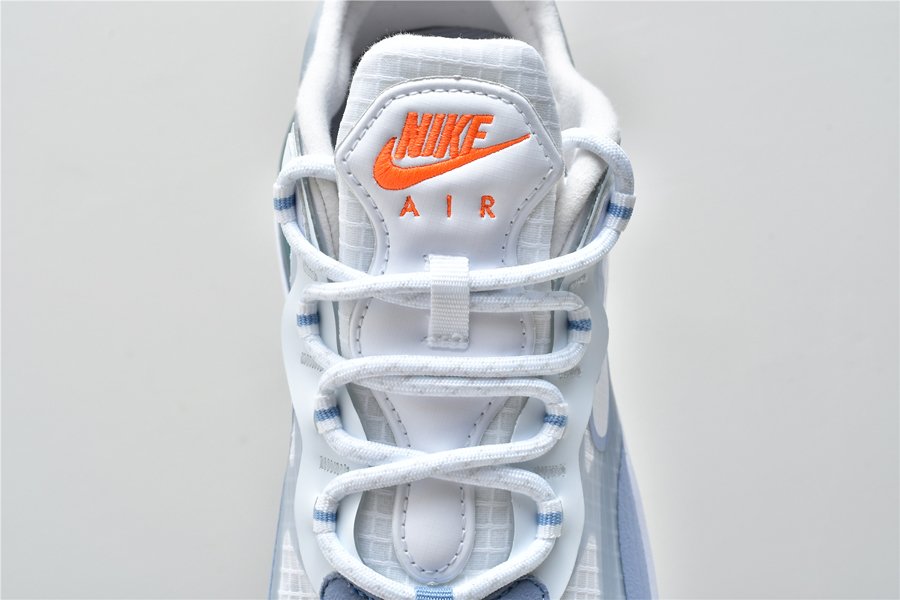 Leaving the original felt-like makeup in its wake, this new “Indigo Fog” edition pairs new grid-patterned translucent uppers with the silhouette’s signature glazed on overlays, and the aforementioned material on the forefoot, heel, and lower lace stay overlays. White covers a handful of the sneaker’s sections, including the tongues, lace stays, liners, heel pulls, midsoles and profile Swooshes, as well as a milky-translucent rubber outsole riding the full length of the sole. Completing the design is a fresh hit of Orange branding on the tongues and blue-tinted Air windows in the rear.
