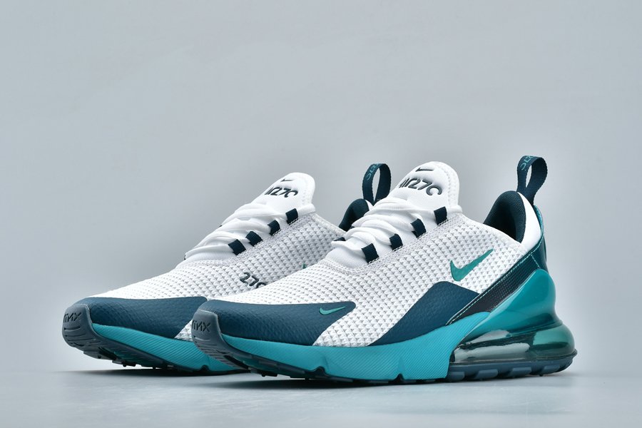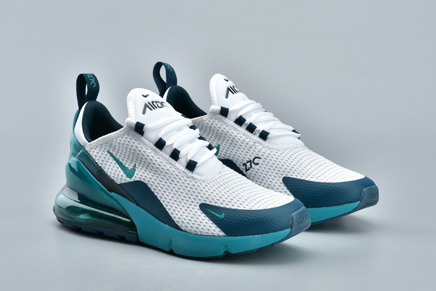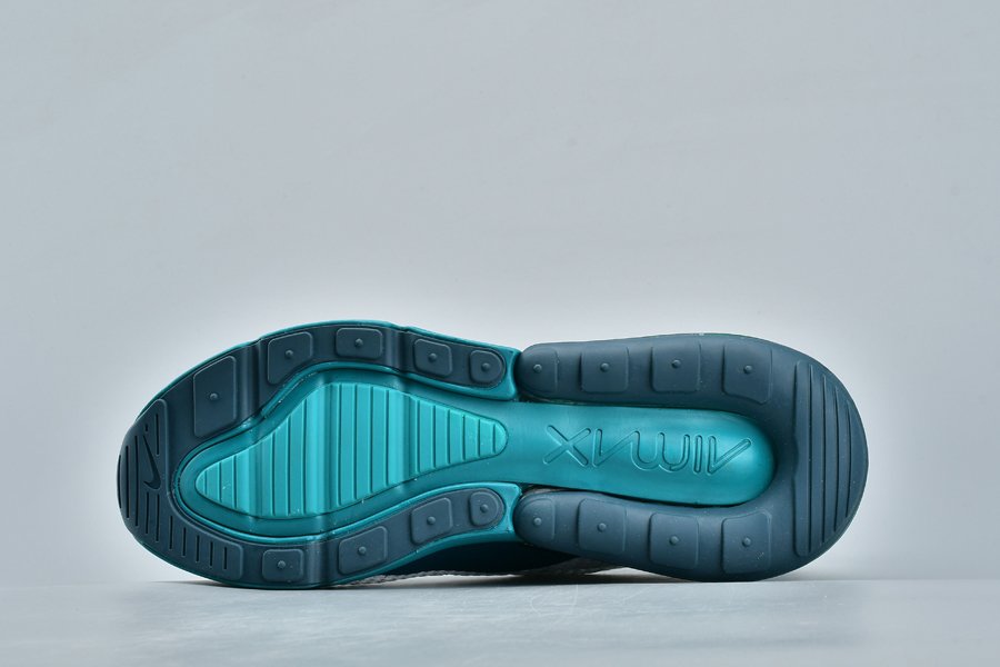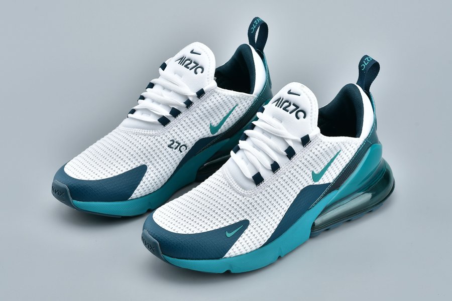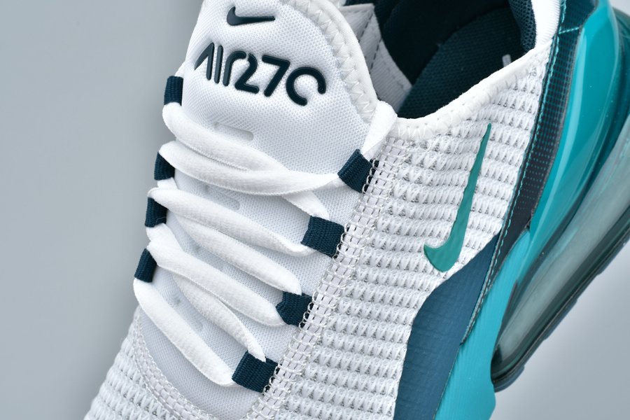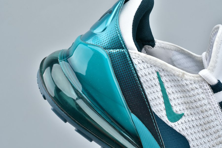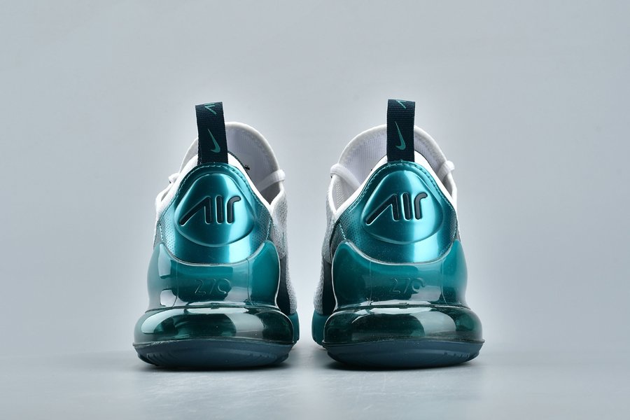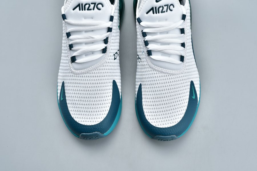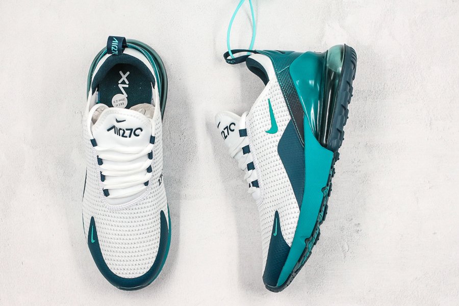 Introduced in bold “Spirit Teal,” the Air Max 270 flaunts a white mesh upper, with the defining teak hue alongside Nightshade hits utilized throughout the profile, particularly on the synthetic overlays, eyelets, Swoosh logos, glossy heel tab and midsole. Finally, the large signature Air Max 270 heel unit in the same teal hue tops off the design.