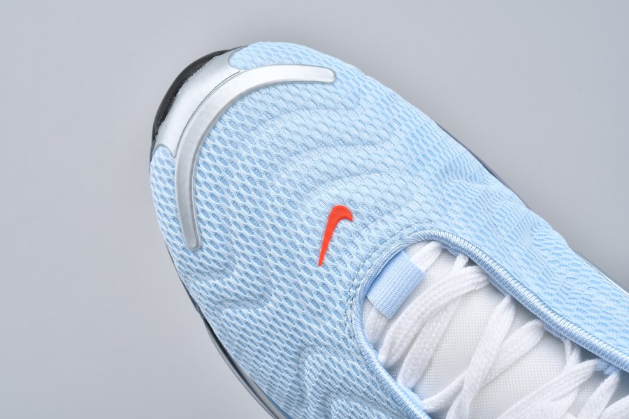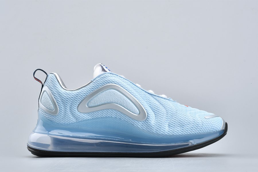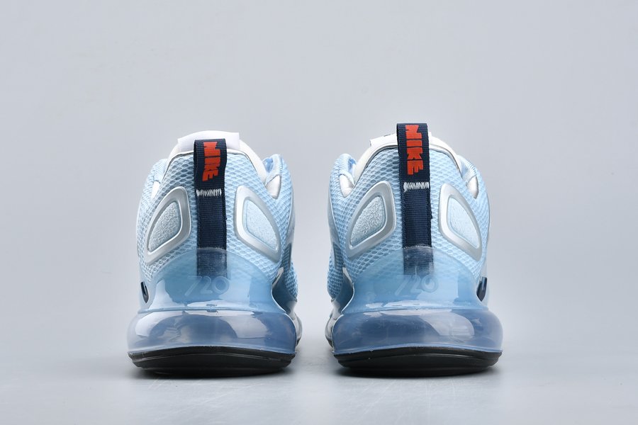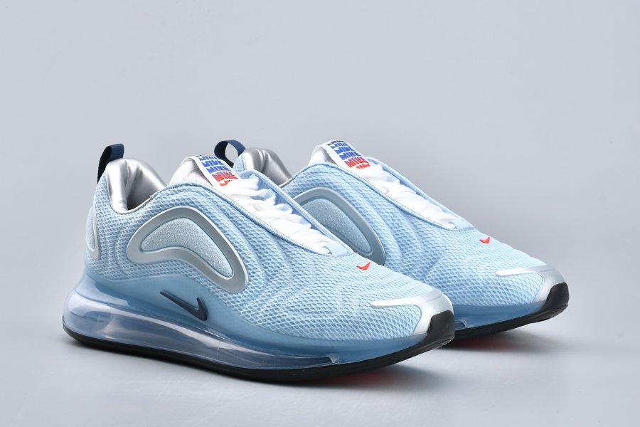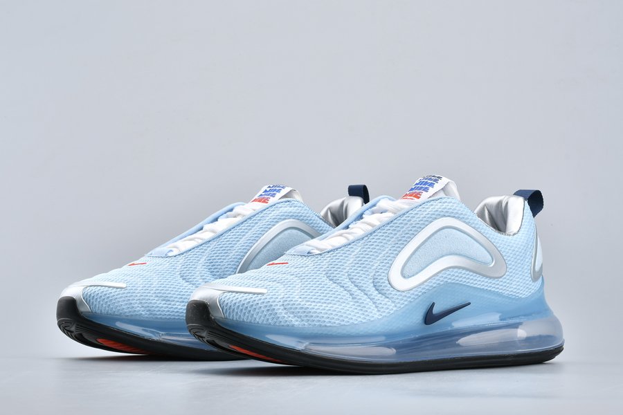 The Nike Air Max 720 “Celestine Blue” is yet another variation of the newly-introduced silhouette that commemorates the Waffle Racer sneaker. Officially mixed with tones of Racer Blue, Metallic Silver and Team Orange, the model dons a light blue mesh upper with metallic silver plastic overlays, followed by a translucent mudguard. Other details include a gradient Nike logo print on the tongues, block branding on the heel tabs and a Waffle-inspired rubber tread graphic on the insole. Finally, a translucent Air Max 720 sole rounds out the design.