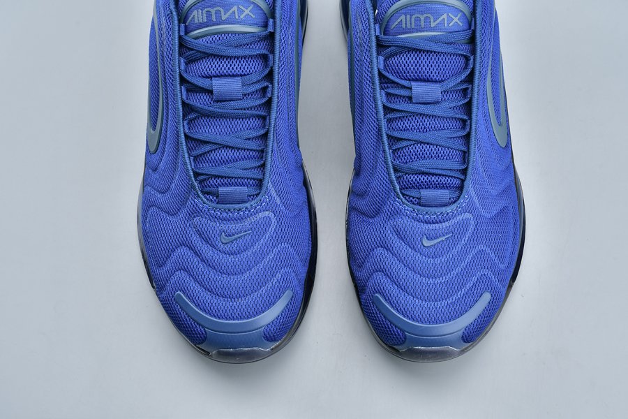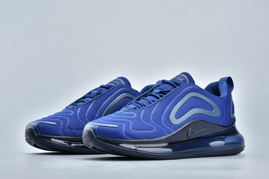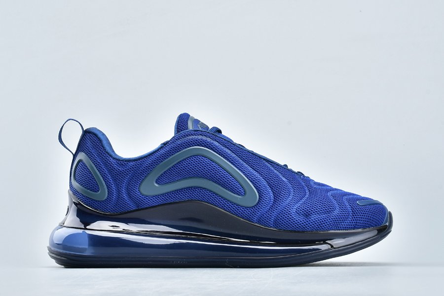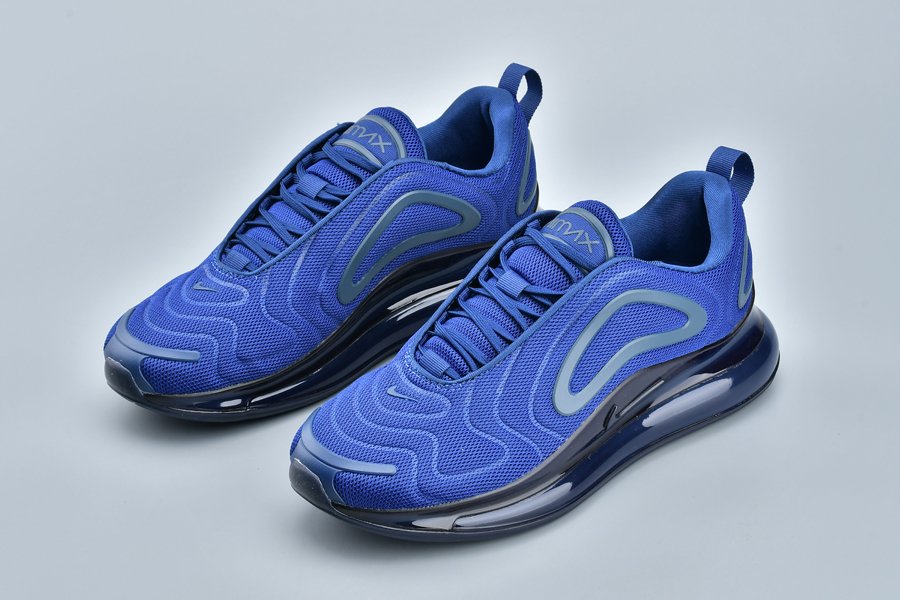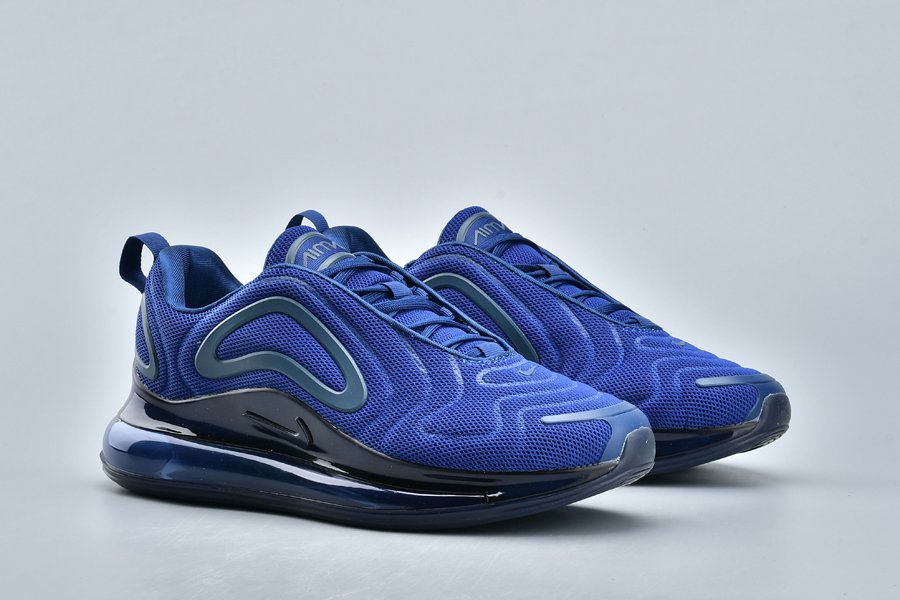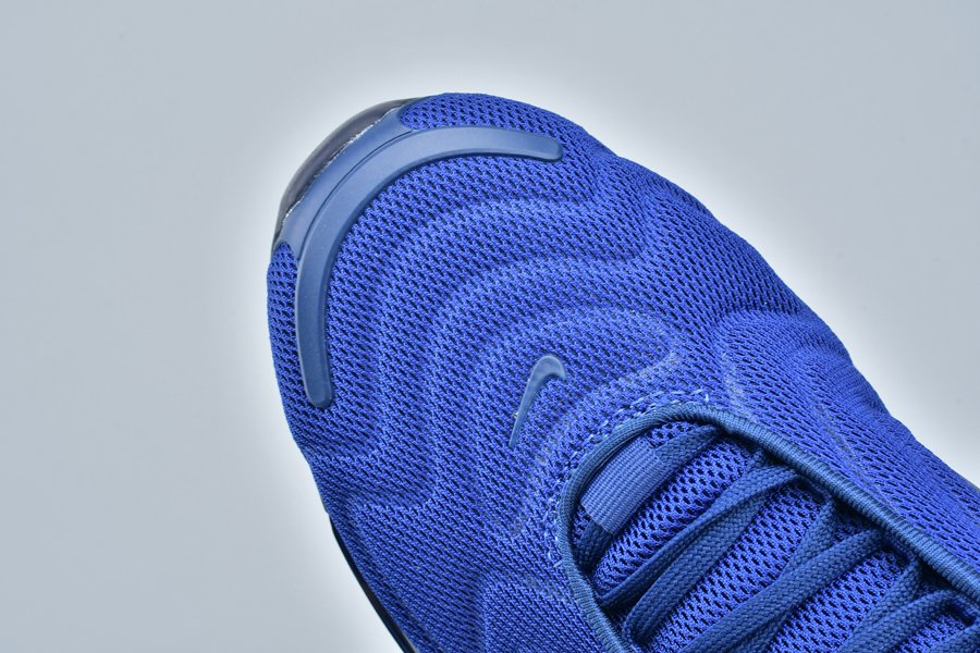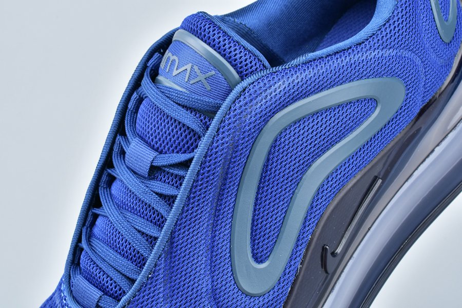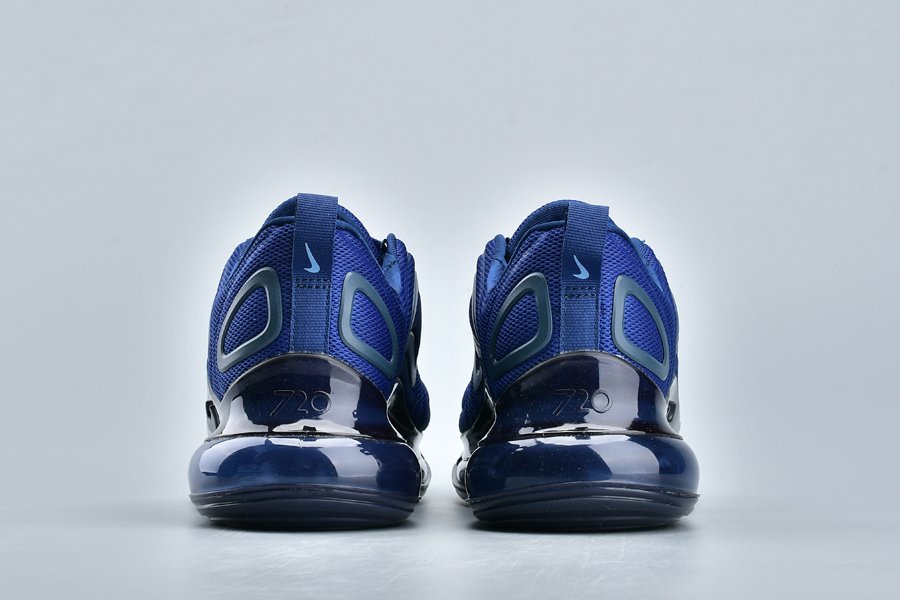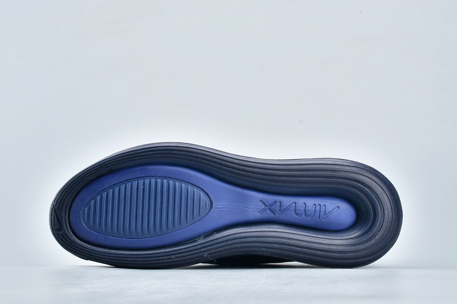 The Nike Air Max 720 features a Midnight Navy mesh construction all throughout the upper with a darker shade of blue being used on the plastic overlays. Black detailing on the midsole and a navy tinted full-length Air Max unit cap off the look.