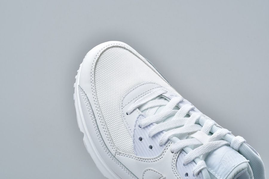 The Nike Air Max 90 Premium arrives in a blank all-white bleach. Featuring a well-appointed material mix, the infamous Air Max 90 shape features a mix of tough synthetic, ballistic nylon and suede on the upper. With a micro-mesh lining for breathable comfort, the iconic upper is secured to a signature PU midsole with visible Air-bag in the heel and rubber waffle tread outsole for durable traction.