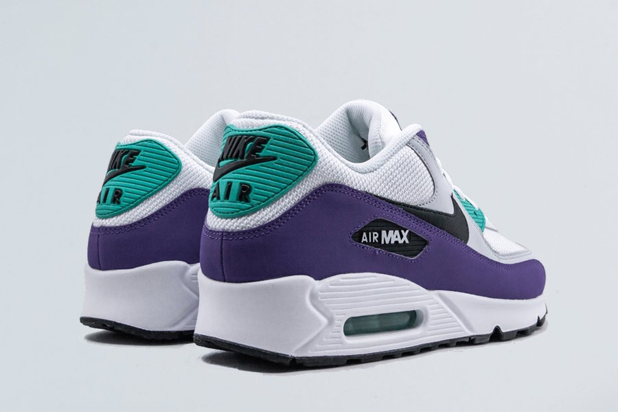 The Nike Air Max 90 Essential ‘Hyper Jade’ (aka ‘Grape’) sneaker brings back a celebrated colorway made popular by the Air Jordan 5. The color-blocked sneaker is packaged with a leather and mesh upper that sports signature Swooshes and Air Max branding. The midsole is enforced with a large visible Max Air unit in the heel, first introduced by the 1990 original, with a Waffle-inspired outsole.