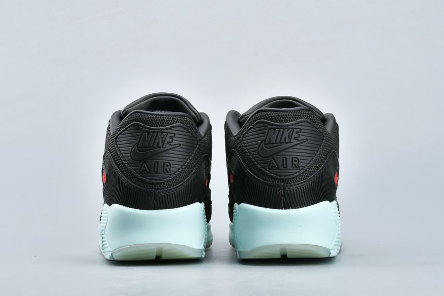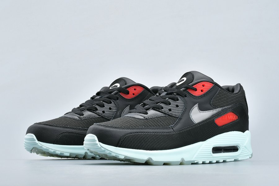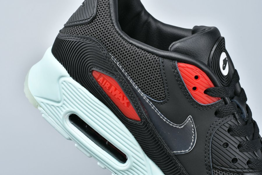 Inspired by the music of the ’90s, Nike present the latest iteration of their iconic Air Max 90 sneaker, the Premium ‘Vinyl’. A black and red pair with a twist, an icy blue sole unit adds a boost of colour to proceedings while textured panels to the uppers replicate the grooves of a vinyl record.