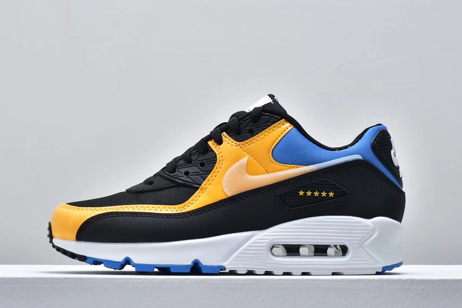 The Air Max 90 is back and is dressed in colors that was requested to bring the sports worlds together! Featuring a white black volt and blue fury colorway an Air Max unit to provide lightweight cushioning rubber sole and the words Nike World Wide accented throughout the shoe!