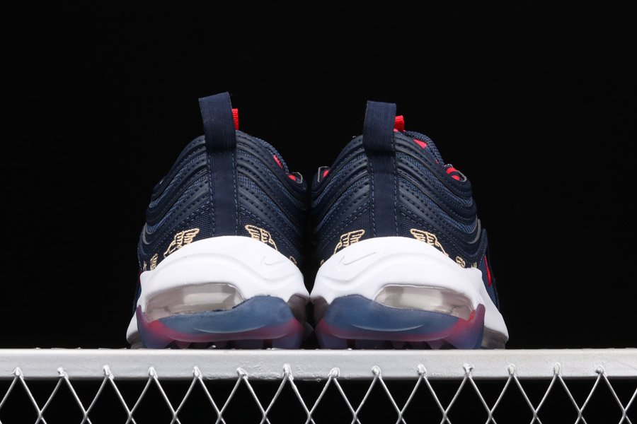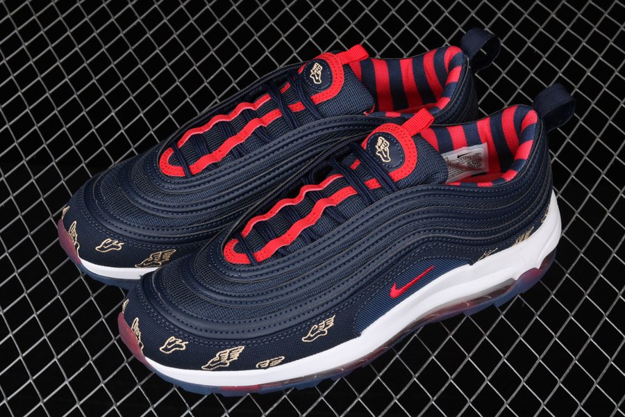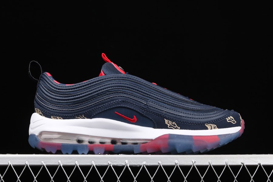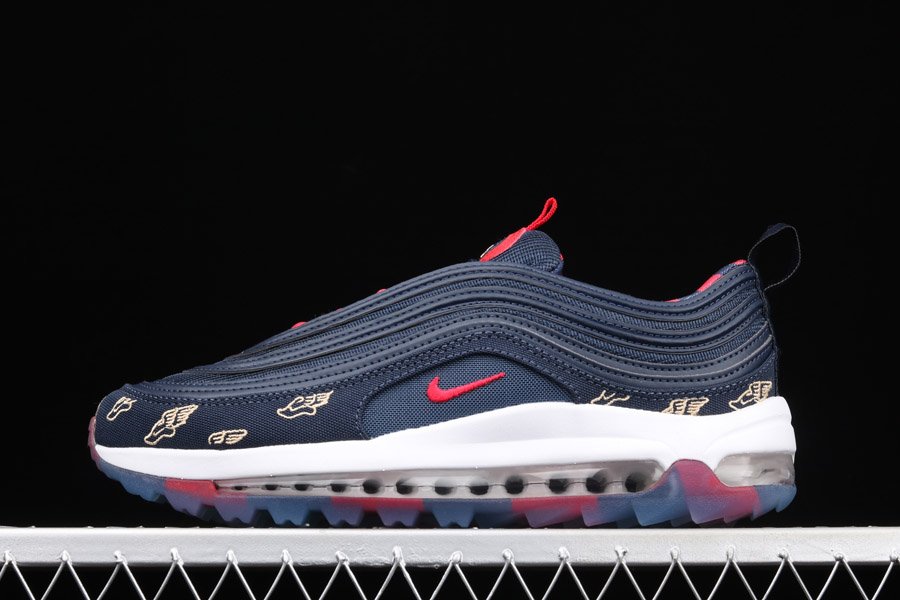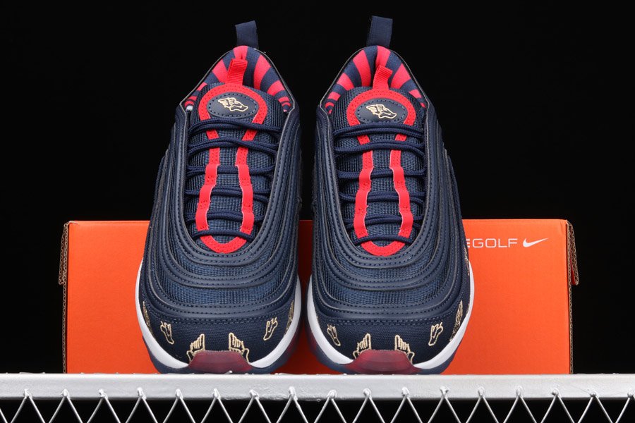 The Air Max 97 posses Golf technology features that are nothing but more than perfect to score an ace on the golf course. Attired with a navy colour scheme, a combination of red and gold accents appear throughout the silhouette.