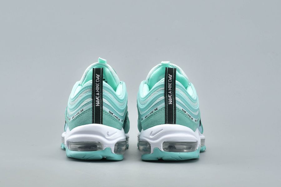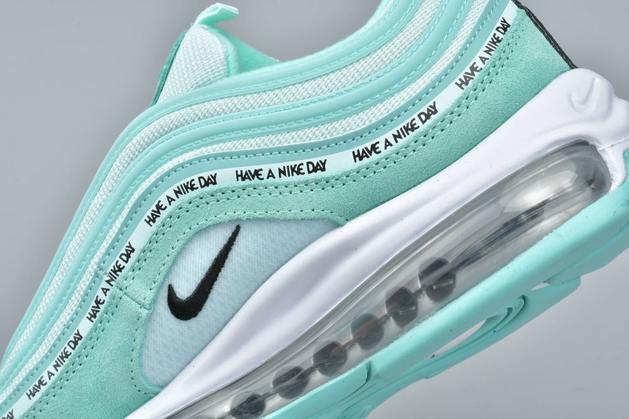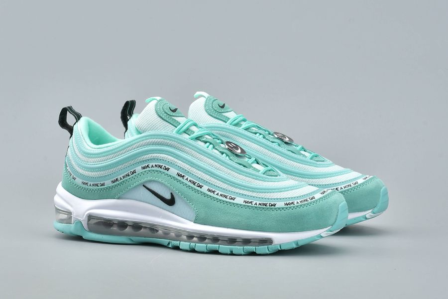 Arriving in Tropical Twist/Black-Teal Tint/White, this Air Max 97 is definitely one to brighten up your rotation. Featuring the 97’s waved upper, hues of green and turquoise decorate this sneaker, with the Have A Nike Day Branding strip wrapping around the entirety of the silhouette.