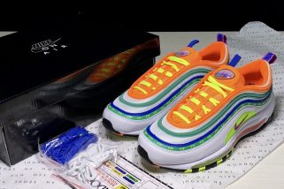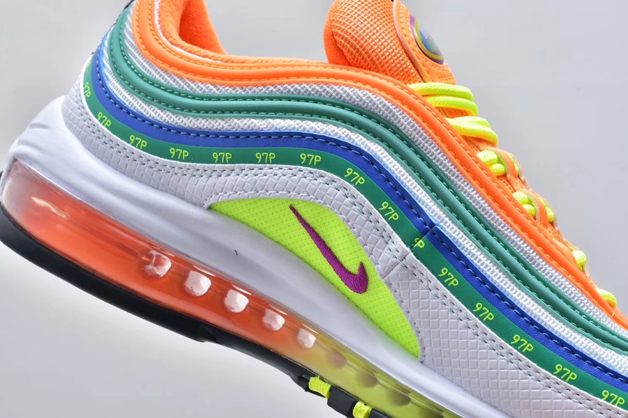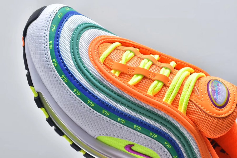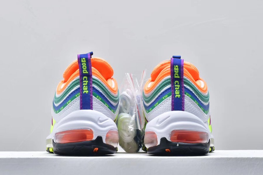 Sporting a vibrant color scheme of orange, green, blue, neon and purple hues across its upper, this iteration celebrates summer in the city and love, as Lasode used a personal memory of her time in London’s Primrose Hill as the source of her inspiration. Finally, the runner’s white mesh base acts as a canvas while finishing touches include “97P” printed in a pattern on the wavy stripe overlay, along with “Good Chat” detailed on the pull tabs.
