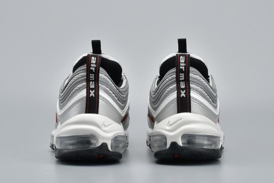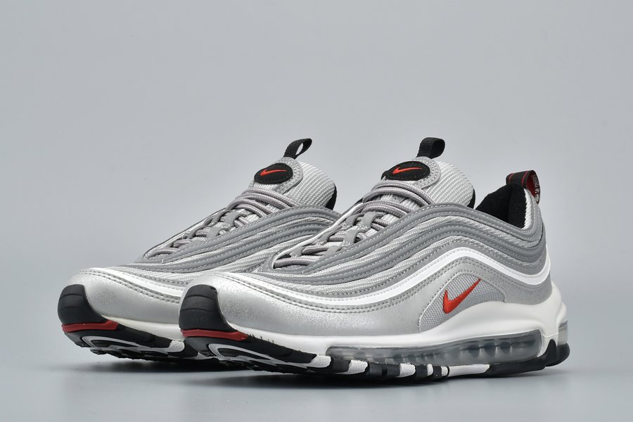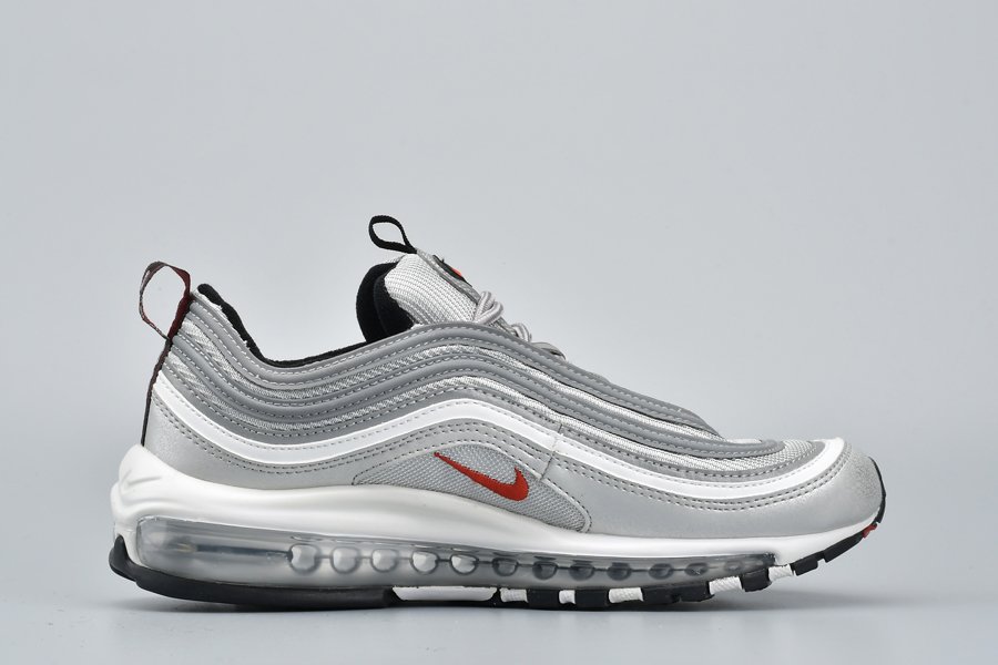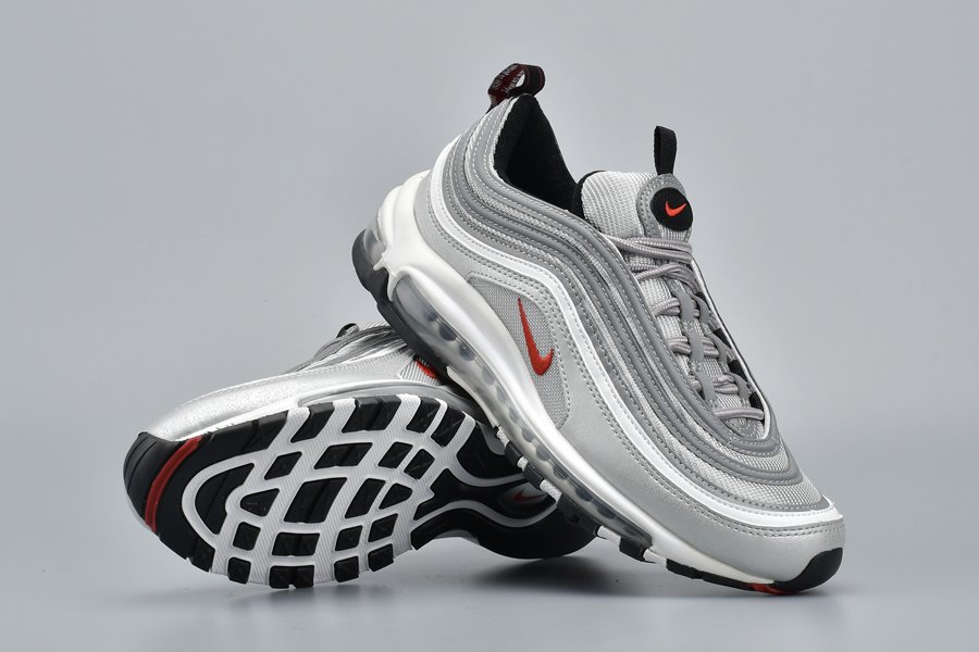 Dressed in its original Metallic Silver, Varsity Red, White and Black color scheme. This Nike Air Max 97 is dubbed, “La silver” in tribute to its ties to Italy. Featuring a Metallic Silver upper with Black and White detailing and Red accents throughout.