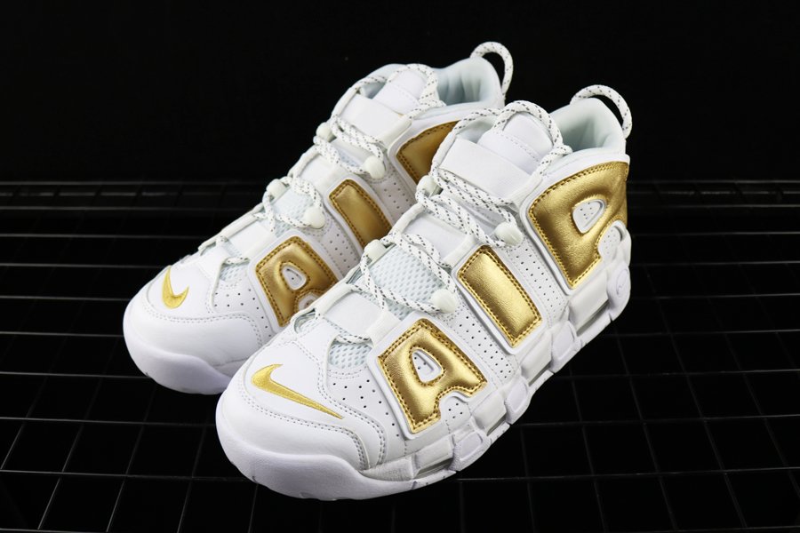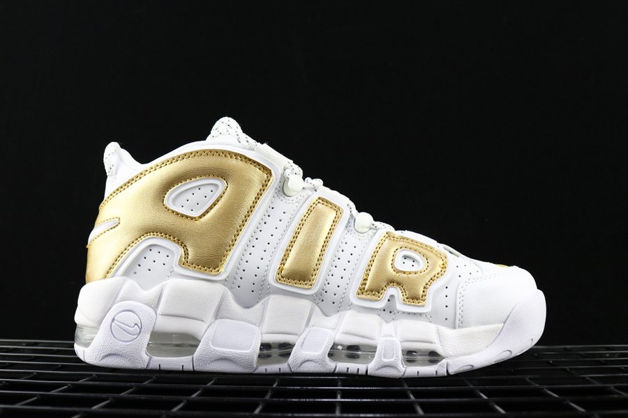 This More Uptempo comes in a White and a celebratory Metallic Gold as they feature an all-White leather base with the signature ‘AIR’ in Metallic Gold, finished off with an all-White outsole.