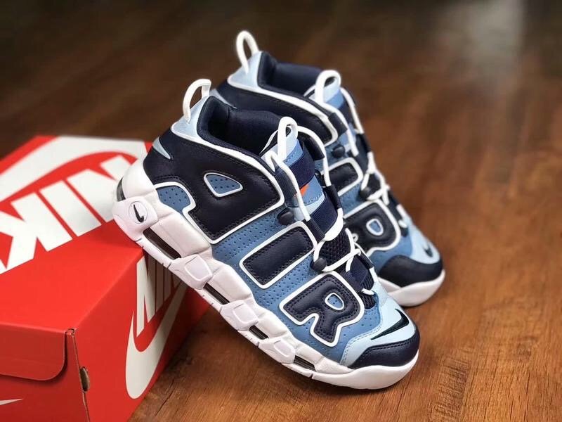 This Nike Air More Uptempo “Denim” comes dressed in a White, Obsidian and Total Orange color combination. Looking closer this pair features three shades of denim across the upper while White lands on the laces, outlines the large AIR and covers the midsole and rubber outsole. Completing the look is Orange that lands on the tongue branding, insole and outsole.