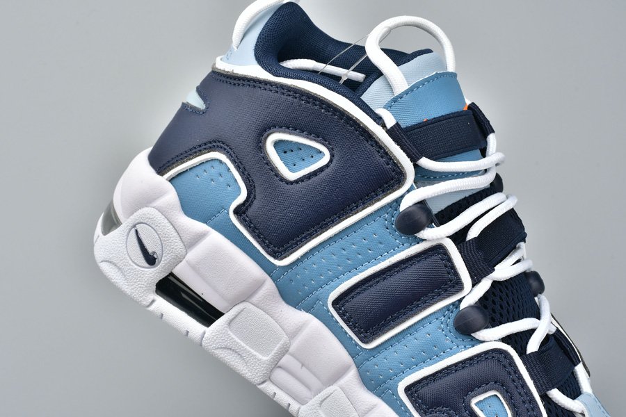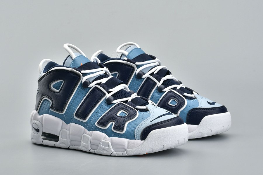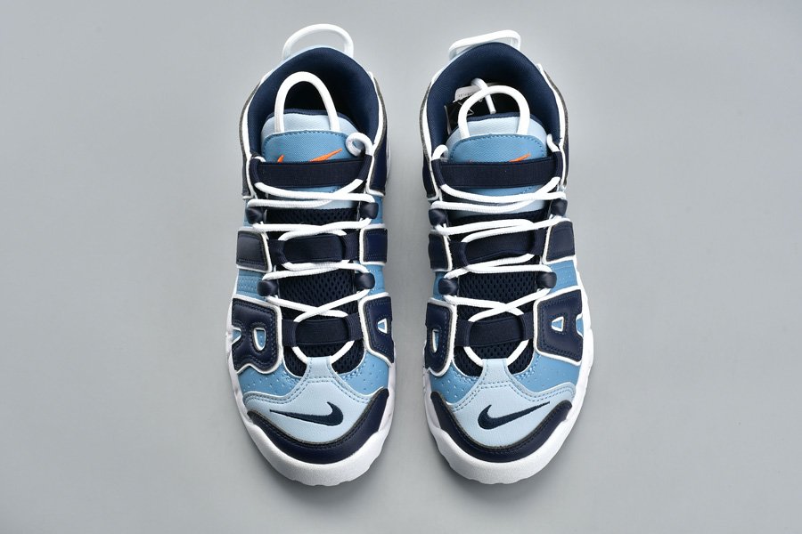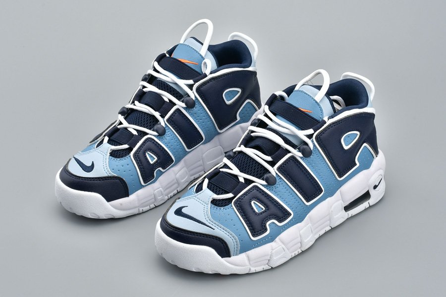 This Nike Air More Uptempo “Denim” comes dressed in a White, Obsidian and Total Orange color combination. Looking closer this pair features three shades of denim across the upper while White lands on the laces, outlines the large AIR and covers the midsole and rubber outsole. Completing the look is Orange that lands on the tongue branding, insole and outsole.