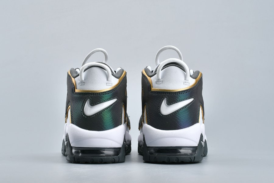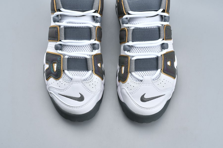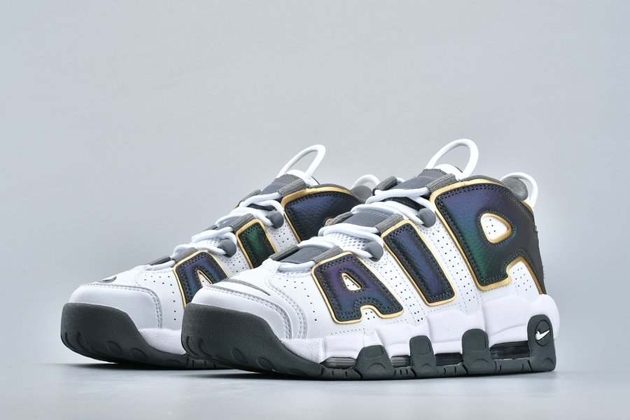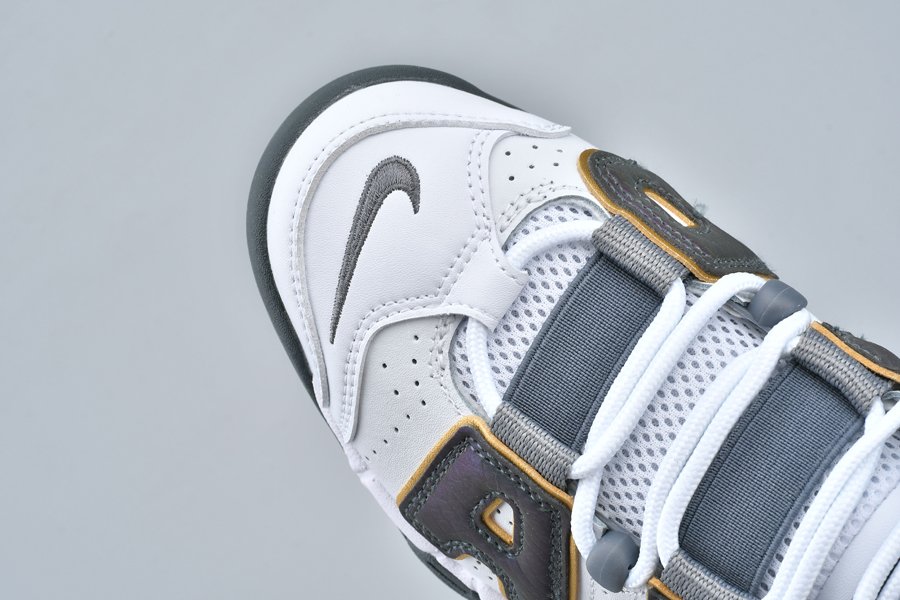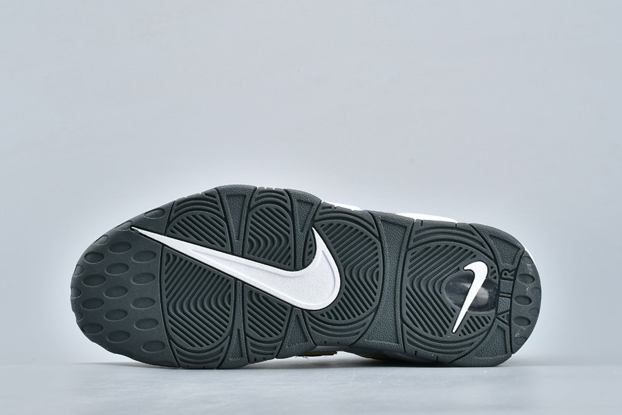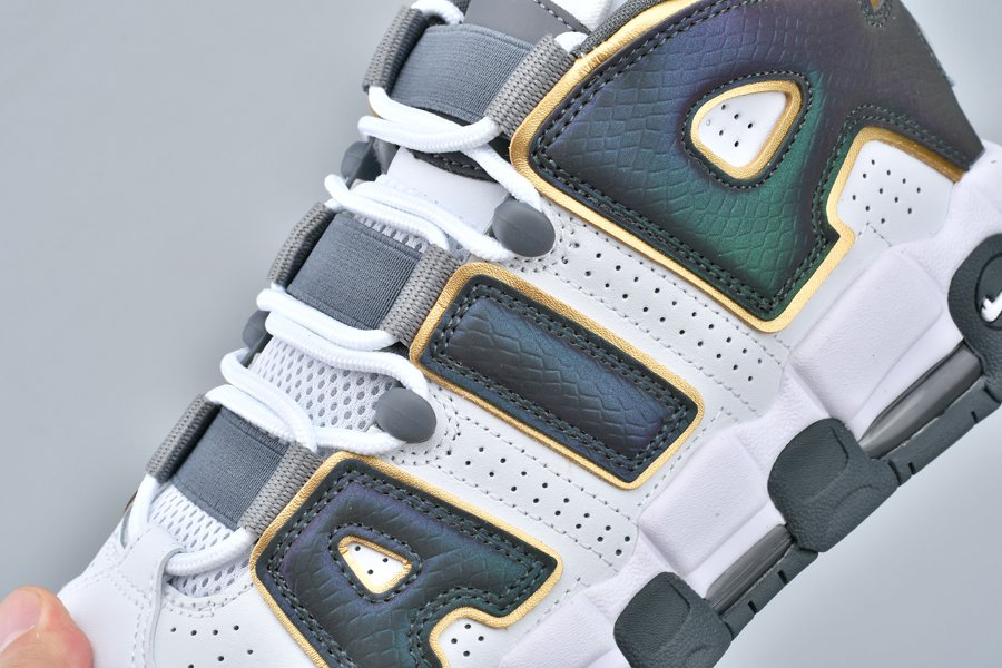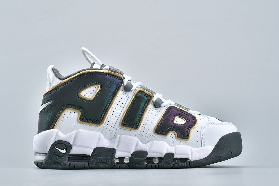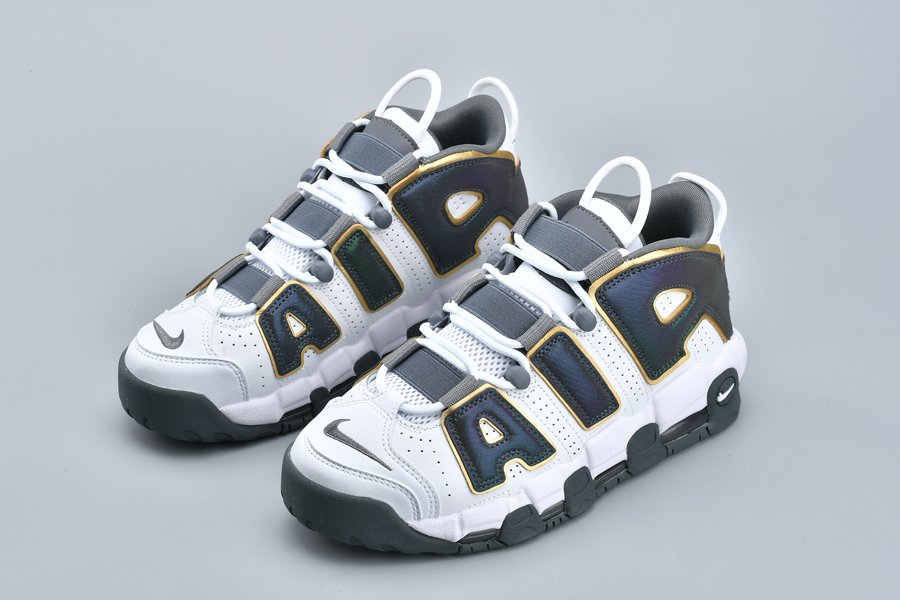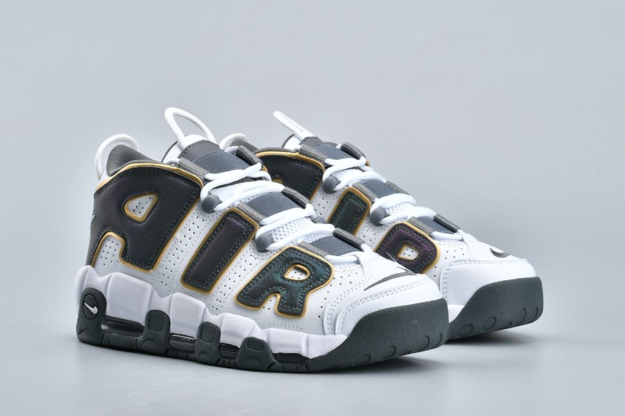Sporting a clean theme with white perforated leather comprising its upper, the model’s highlight is the enlarged “AIR” in anthracite adorning the side panels, which are also outlined in gold. Finally, a white midsole and matching anthracite rubber sole rounds out the solid style.