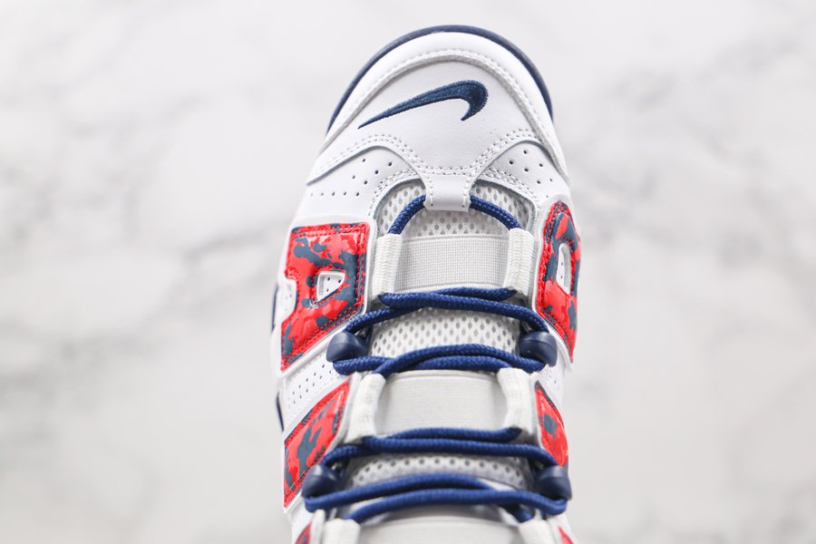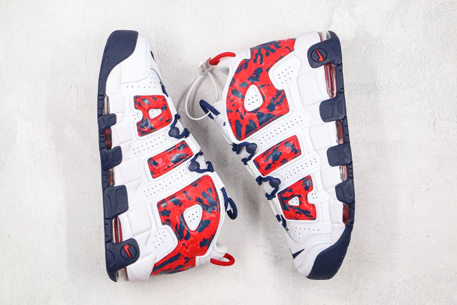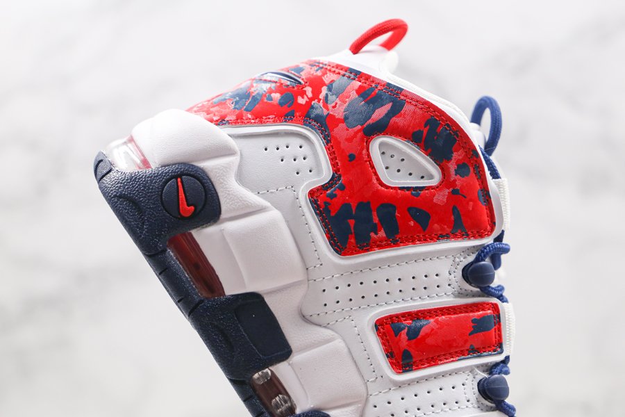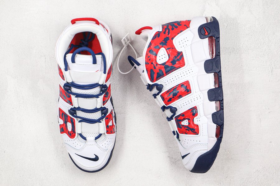This release arrives with a white leather upper but calls upon the USA’s national colors in navy and red in equal measure. Rich reds drape the midfoot “AIR” lettering, heel pull, Air supports and sole unit Swoosh sets, with Navy reserved for the pair’s sole unit, tongue pill laces, forefoot embroidered and rear jewel Swoosh, as well as the pair’s champion finish, the Tie-Dye print splayed across the aforementioned red lettering.