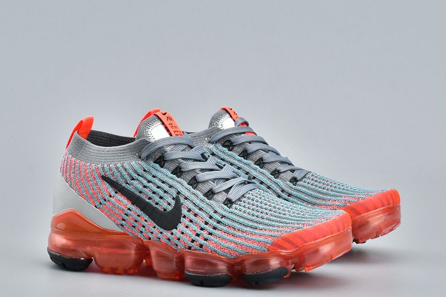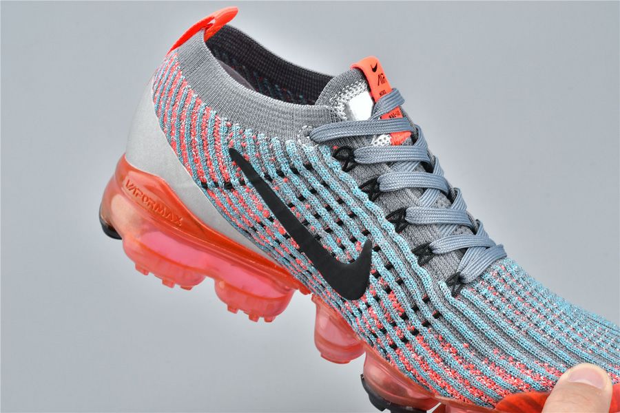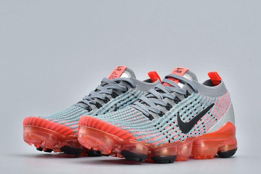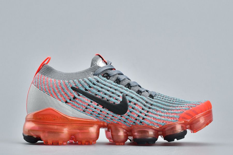 Nike’s Vapormax 3 silhouette, though close to its original counterpart, offers up sleek innovation alongside revolutionary cushioning. Though many have forgotten the air bubble tech in favor of Beaverton’s newest React soles, the Flyknit runner still holds onto its merit. The newest colorway to enter its comfortable ranks is a vibrant scheme of neon tones made exclusive to women, opting out of the usual blue translucence for an emanating red glow. This weaves its way subtly into some of the upper while a bright blue and neutral grey make up the rest of the assorted pattern. Tongue tags and heel pull tabs match in compliment, completing a kit ready for onlooking eyes.