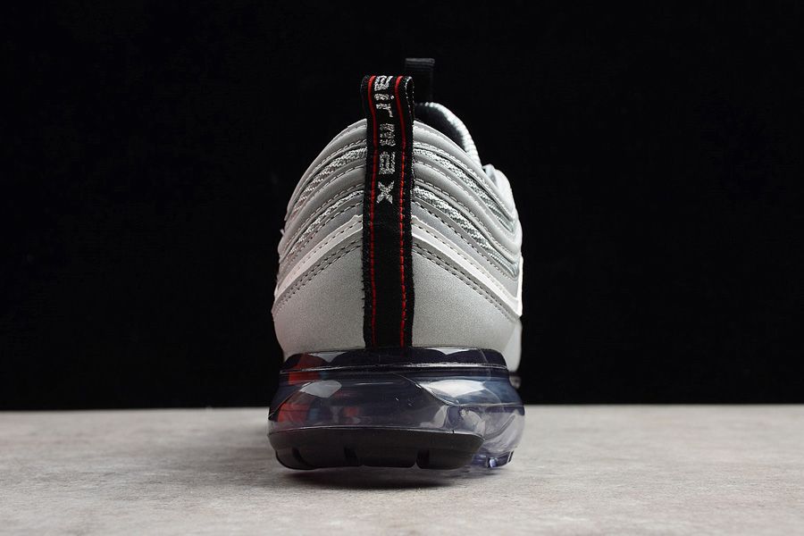 There’s nothing more exciting than a traditional silo on its highest point of victory! The Air Max 97 and Air VaporMax twist-up their best features to make a storm in the sneaker cauldron! AM 97 upper body and the Air chunks of VaporMax say quite a lot about this fusion. Shimmering silver ash paints it all in a monochromatic way with bits of white, red, and black.